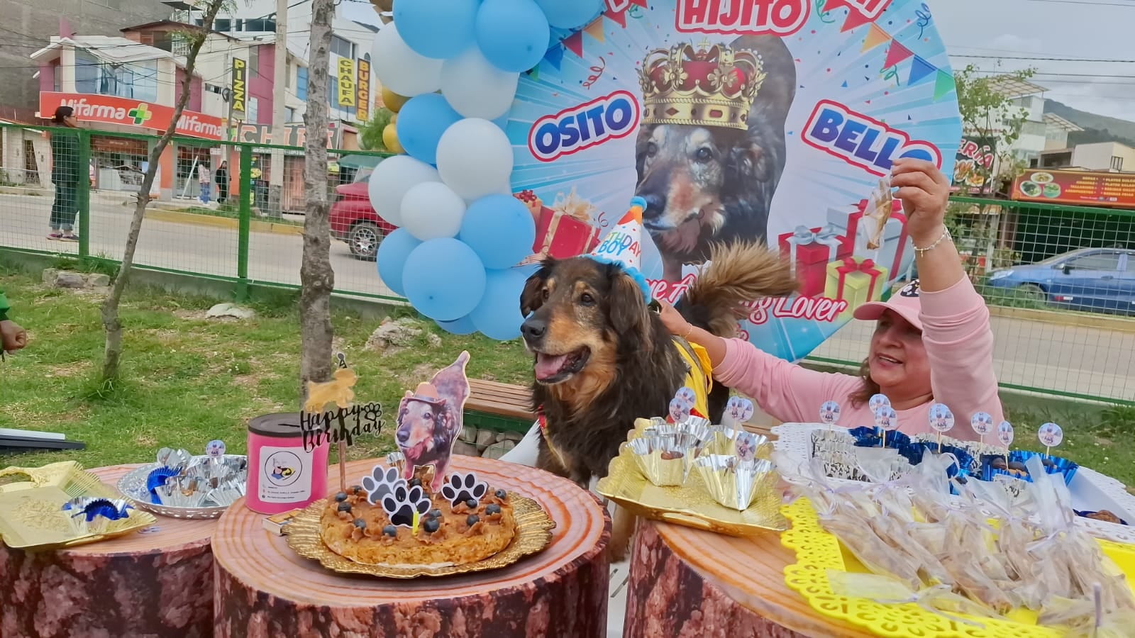 “Oso”, el perro más querido de Huancayo y su “madre adoptiva”, Ana Bocanegra incursionan en las piñatas perrunas, que incluye la torta, bocaditos, piñata y decoración para la fiesta de los engreídos de cuatro patas.