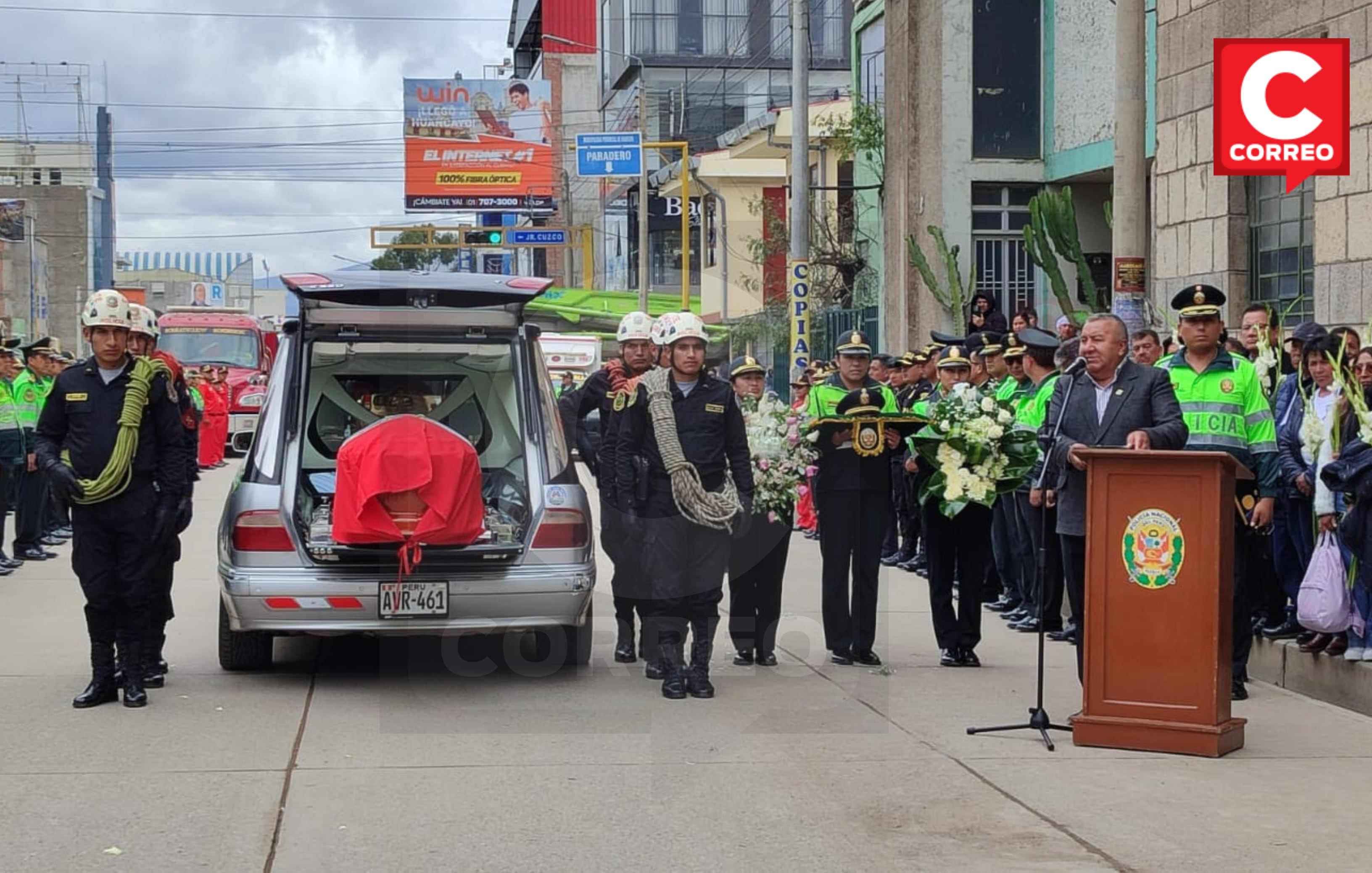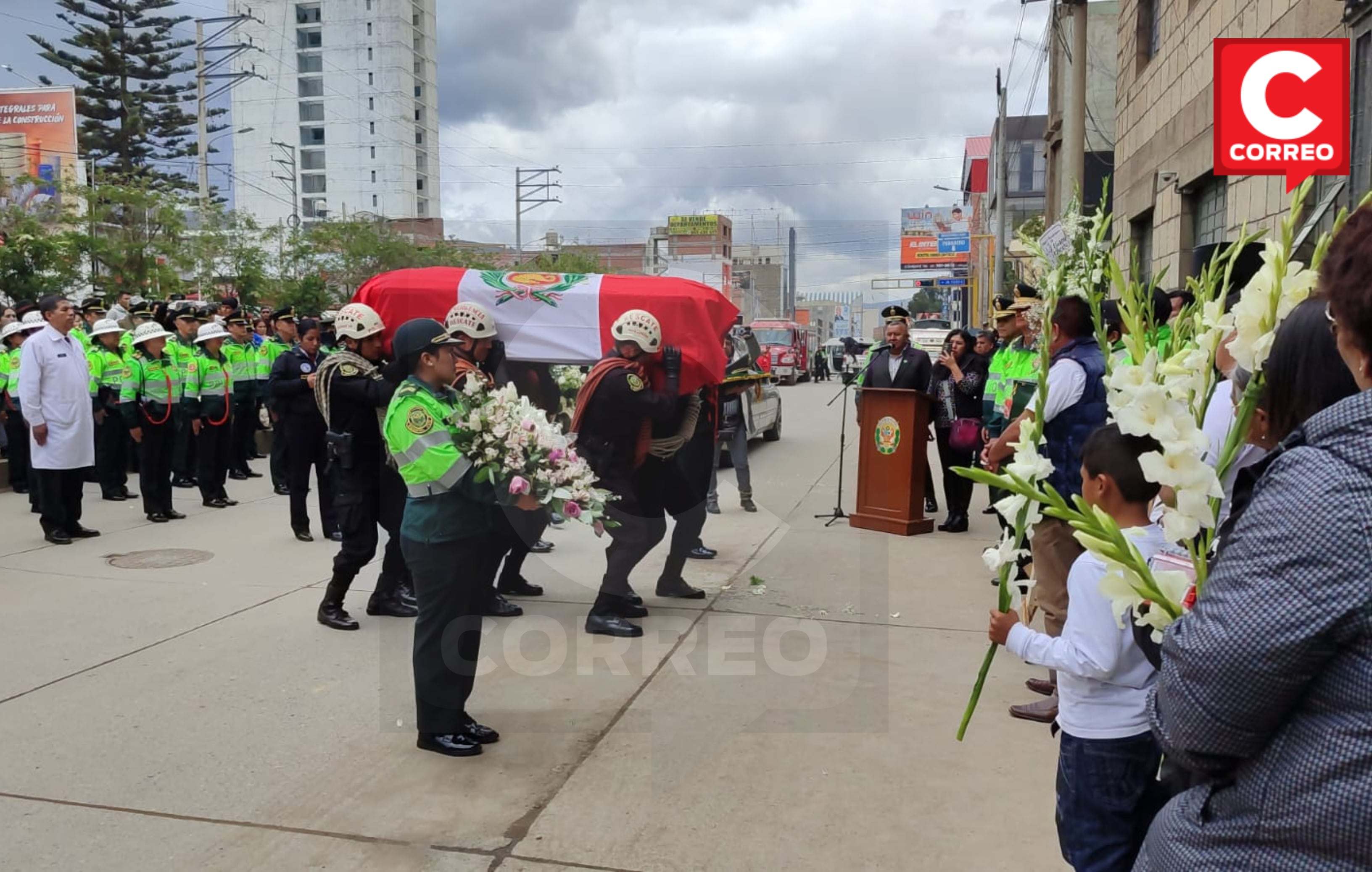 La Región Policial Junín, la mañana de ayer, realizó la ceremonia de recepción de los restos del agente en el aeropuerto Francisco Carlé de la provincia de Jauja, luego fue trasladado hacia la comisaría de Huancayo donde se llevó a cabo un acto protocolar para recordar a este valeroso hombre que dio su vida para rescatar a un perrito.