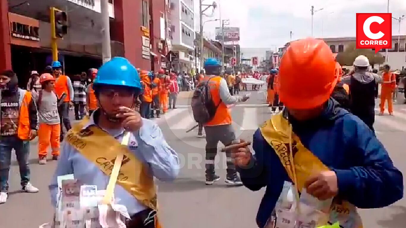 El Sindicato de trabajadores de Construcción civil realizó una protesta en la ciudad de Huancayo. Ellos llegaron hasta el Gobierno Regional de Junín y pidieron que les incrementen el salario y respeten el acuerdo colectivo.