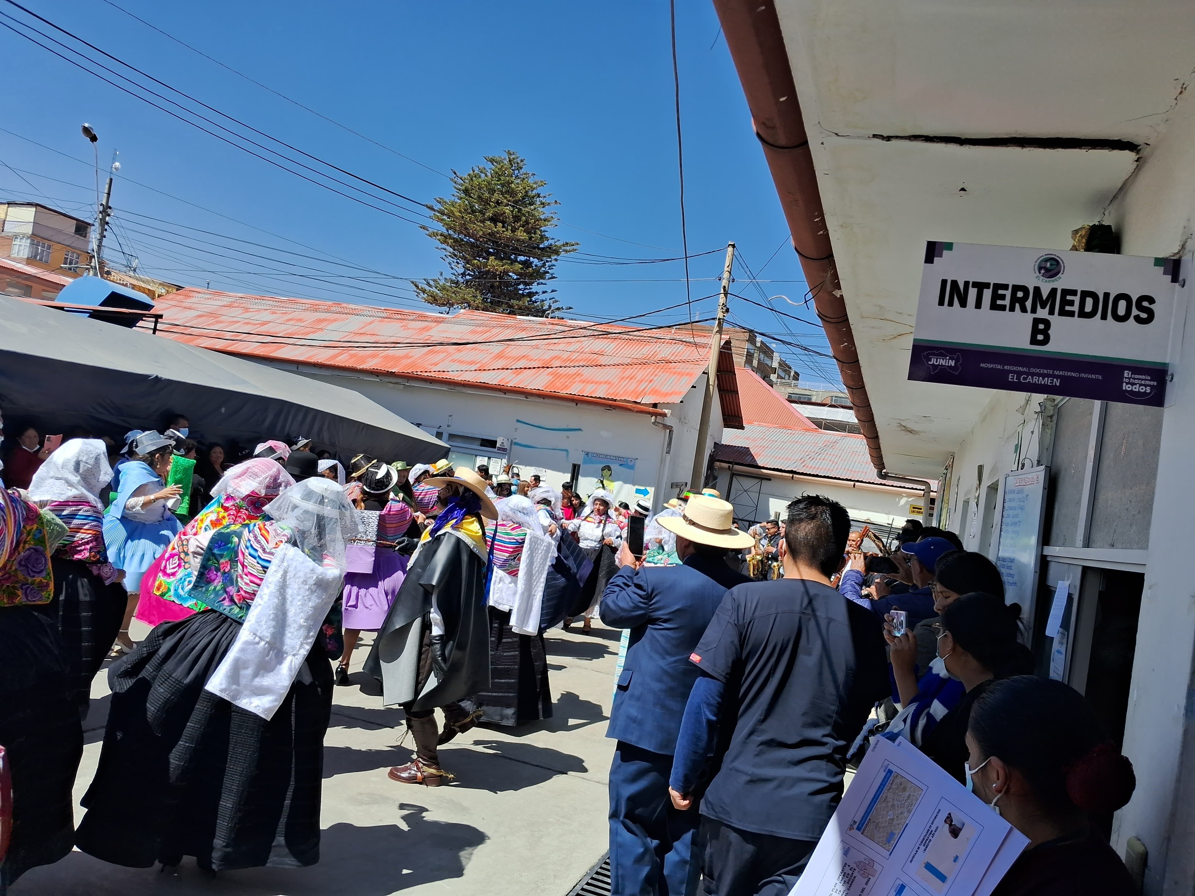 Las wankitas, jaujinas, sicaínas, chutos y demás personajes de la tunantada bailaban de lo lindo en el patio del hospital, donde ingresan y salen ambulancia. Además en el lugar está la sala de intermedios B, donde están internados bebés prematuros con complicaciones.