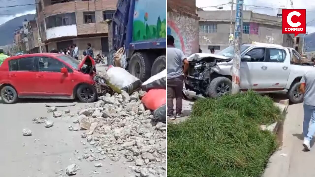 El hecho ocurrió en el Jr. Arterial y Juan Santos Chocano, entre una camioneta blanca de placa CBP-704, un auto rojo T10-330 y el recolector de basura, todos los vehículos quedaron con graves daños materiales, afortunadamente los conductores salieron ilesos y fueron trasladados a la comisaría del distrito.