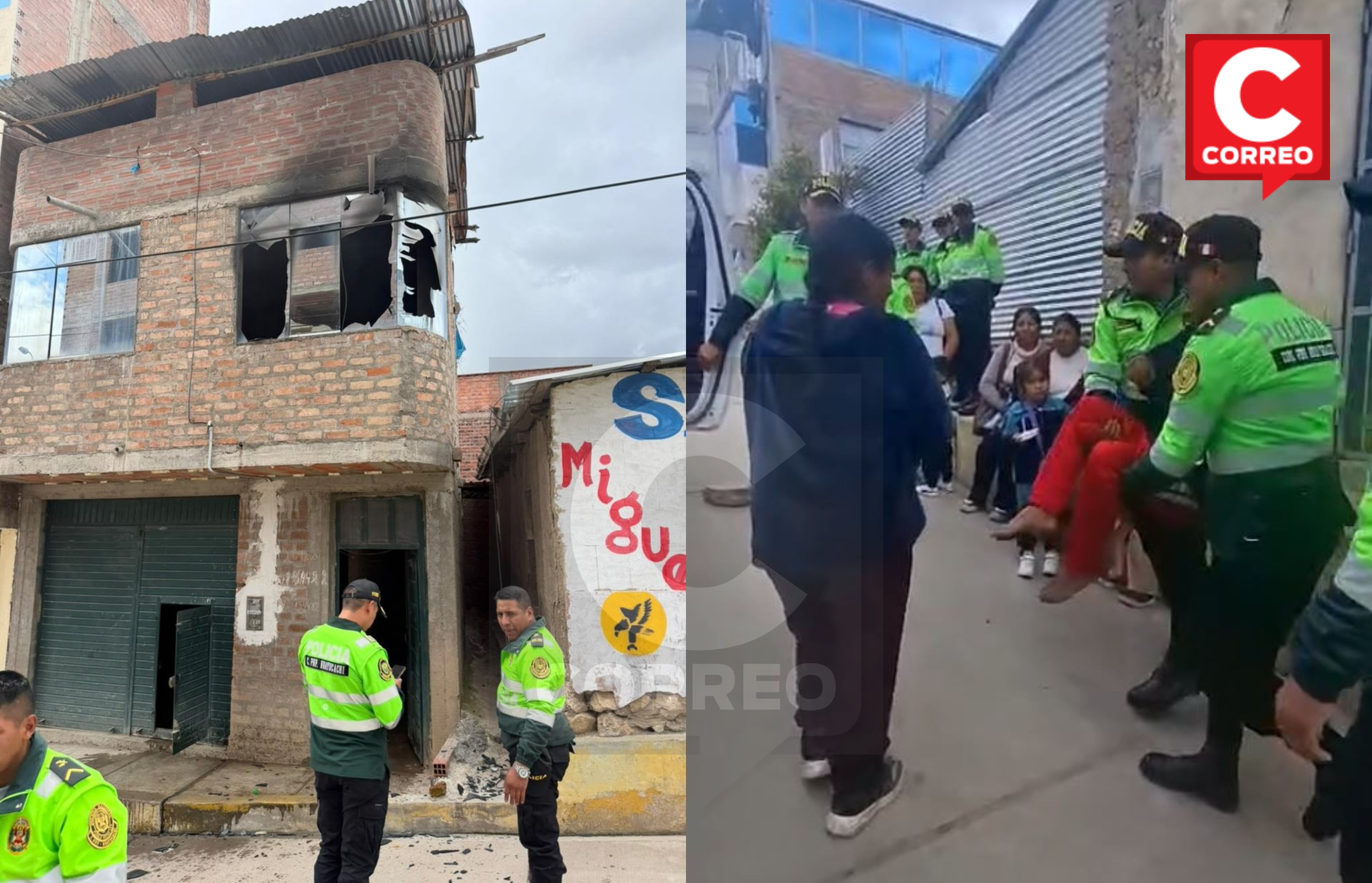 En una valerosa acción, policías de la comisaría de Huayucachi, rescataron a Doris Chamorro Carhuallanqui (53) y su hijo de 16 años, con habilidades especiales, controlando el siniestro.