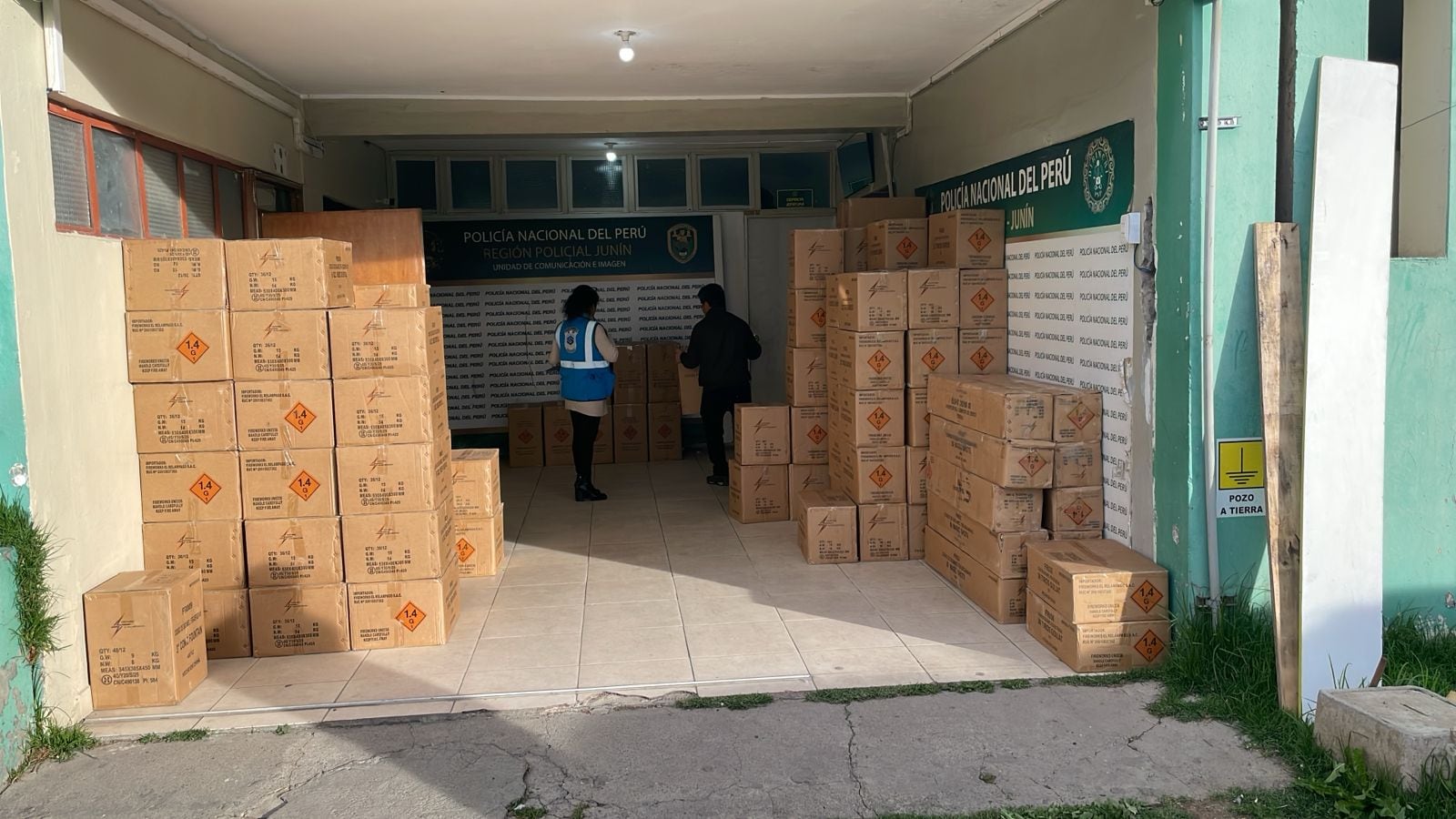 En el lugar, la Policía incautó 274 cajas de cartón con material pirotécnico importado, además de un camión de placa M3Z-822 donde se encontraba parte de los productos pirotécnicos importados que se adquirió en Lima.