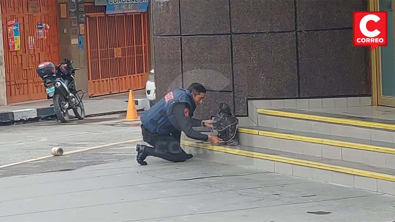 Según el primer reporte policial, los vecinos del lugar dieron a conocer que un desconocido dejó una bolsa negra, con una caja roja en su interior, en la puerta de la Corte superior de Justicia Junín y presumían que al interior se encontraba algún tipo de explosivo. Hasta el lugar llegó personal de la UDEX para la inspección.