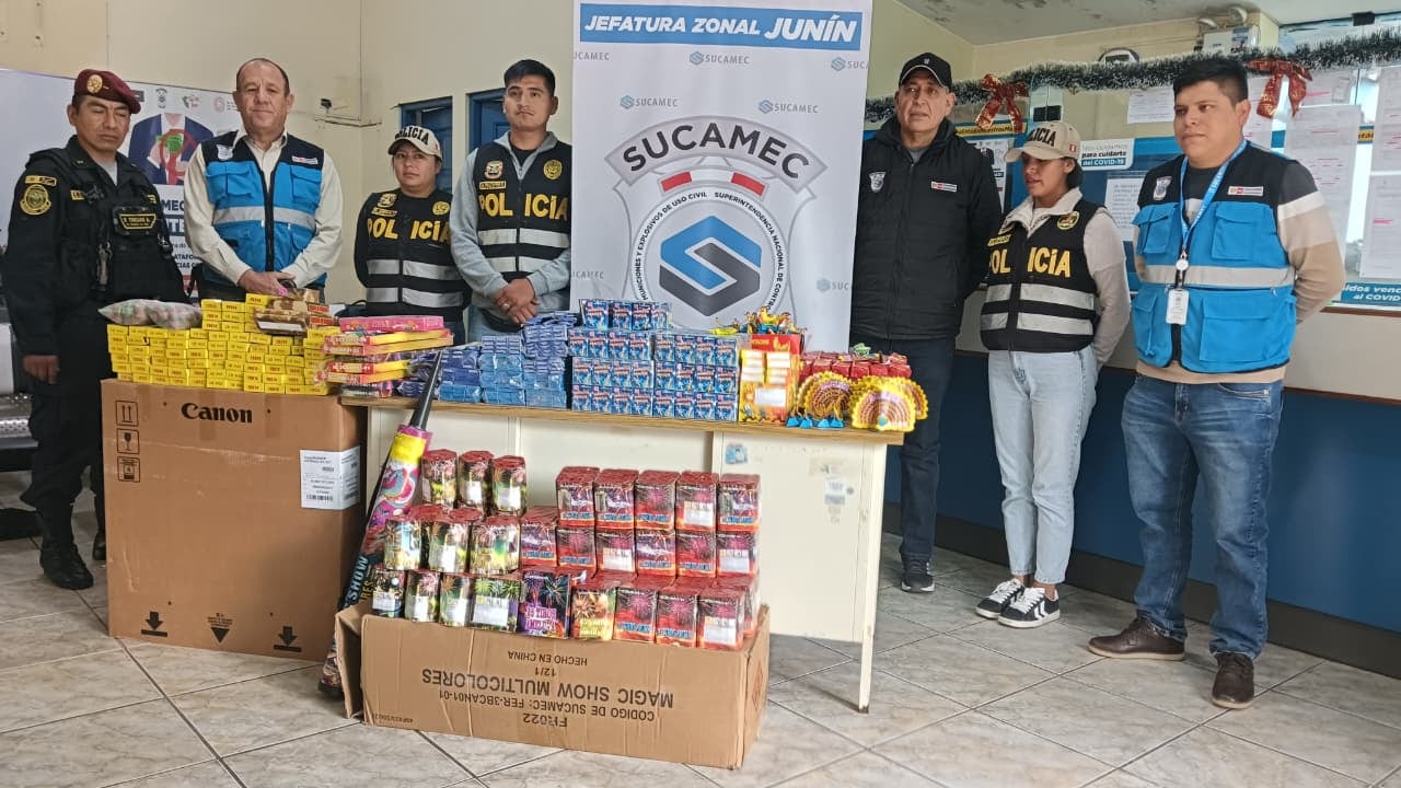 Un operativo inopinado permitió el decomiso de más de 600 kilos de productos pirotécnicos en distintos puntos de la región Junín, como parte de las acciones preventivas ante la cercanía de las celebraciones de Año Nuevo. Las intervenciones se realizaron en las provincias de Huancayo y Chupaca, donde se detectó la venta informal de estos materiales altamente peligrosos.
