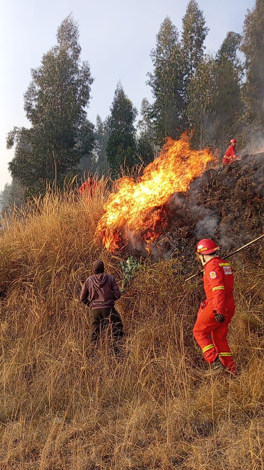 El comandante departamental de los bomberos en Junín Centro, Arif Torres Orihuela, manifestó que una declaratoria en emergencia es urgente para asignar más recursos y equipos para sofocar los incendios pero la tiene que requerir el Gobierno Regional de Junín, a través de Defensa Civil.