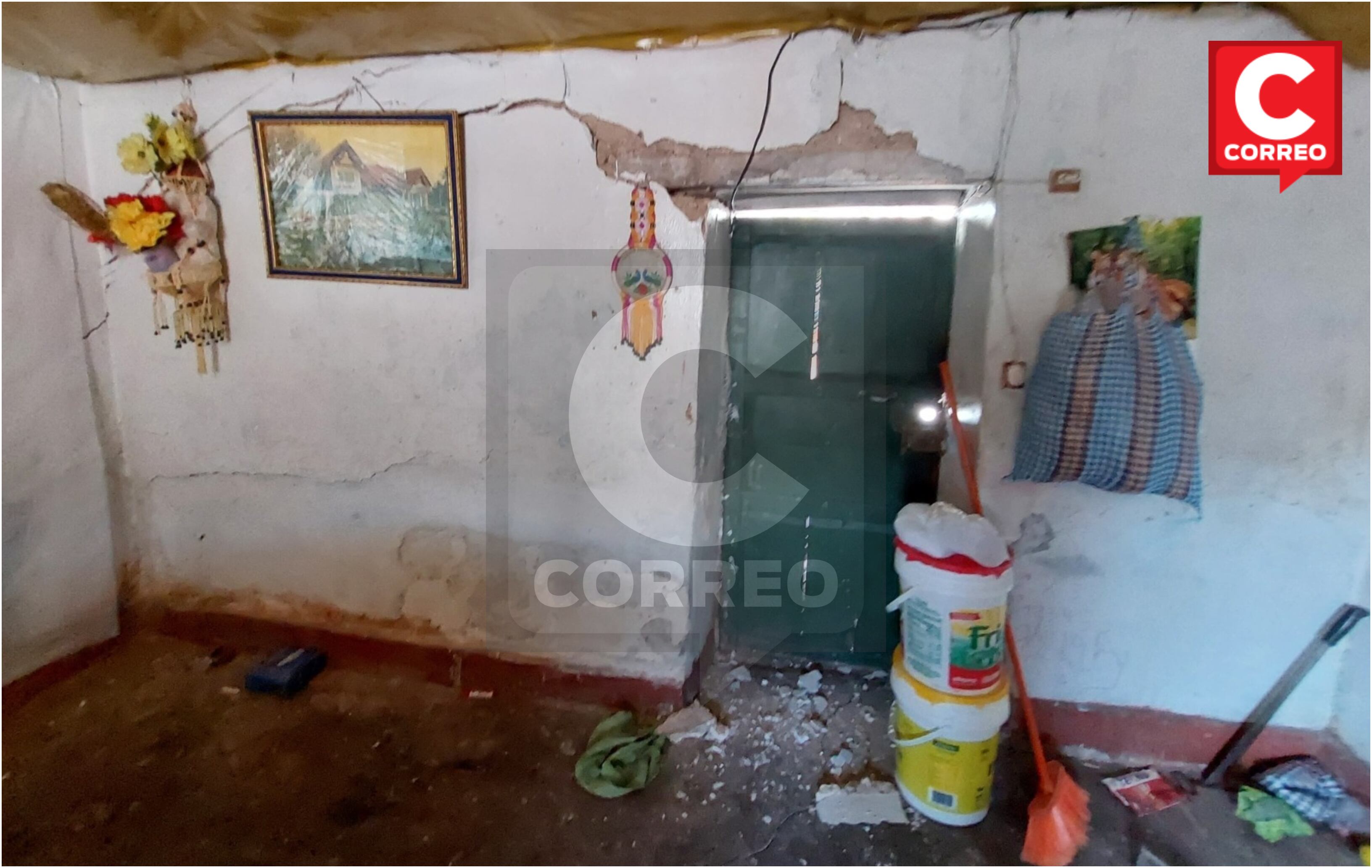 Otra casa dañada es de la de Maruja Yapias de 59 años que también tiene las mismas grietas en su hogar indicando la vecina que estas rajaduras fueron reparadas por los encargados de la empresa Activos Mineros hace algunos años atrás.