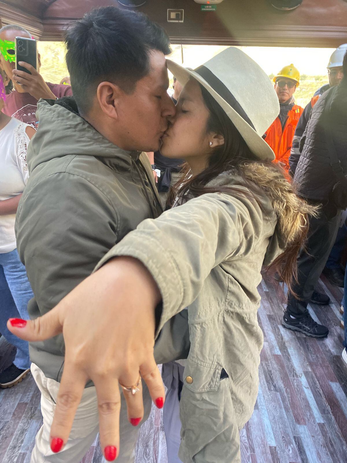 El novio cumplió su deseo de pedir la mano en el tren más alto del Perú. Ana selló su amor con un beso mientras estiraba la mano donde se veía su costoso anillo.