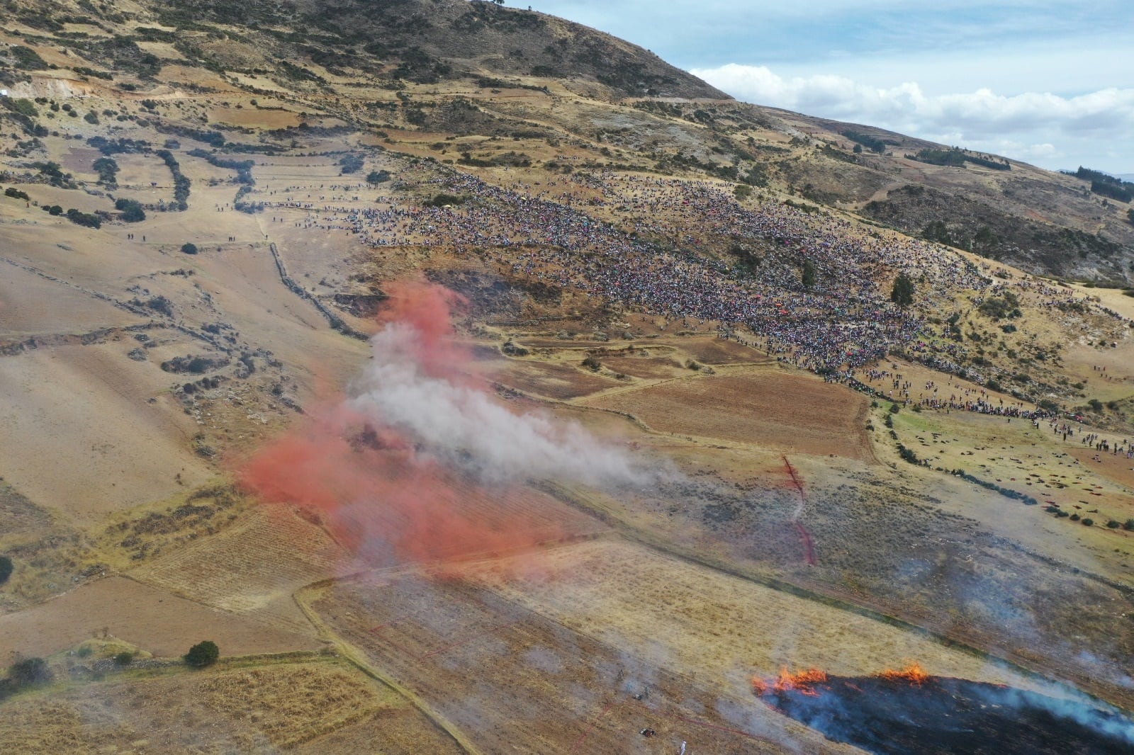 La escenificación duró 90 minutos. Entre los actores, estuvieron 1 500 estudiantes del Instituto Andrés A. Cáceres Dorregaray de San Agustín de Cajas y colegios estatales, 400 comuneros y 200 efectivos del Ejército Peruano, todos ellos identificados y comprometidos con el papel que interpretaron.