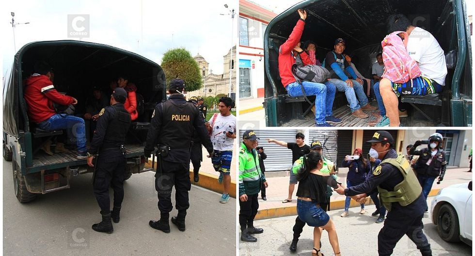 El general PNP Alejandro Oviedo Echevarria con el coronel PNP Adan Alvarado, estuvieron al mando de las intervenciones, muchos de los intervenidos decían que solo estaban buscando alimentos, otros que venían a comprar o realizar pagos al banco. Todos fueron conducidos a las dependencias policiales para realizar el control de identidad .