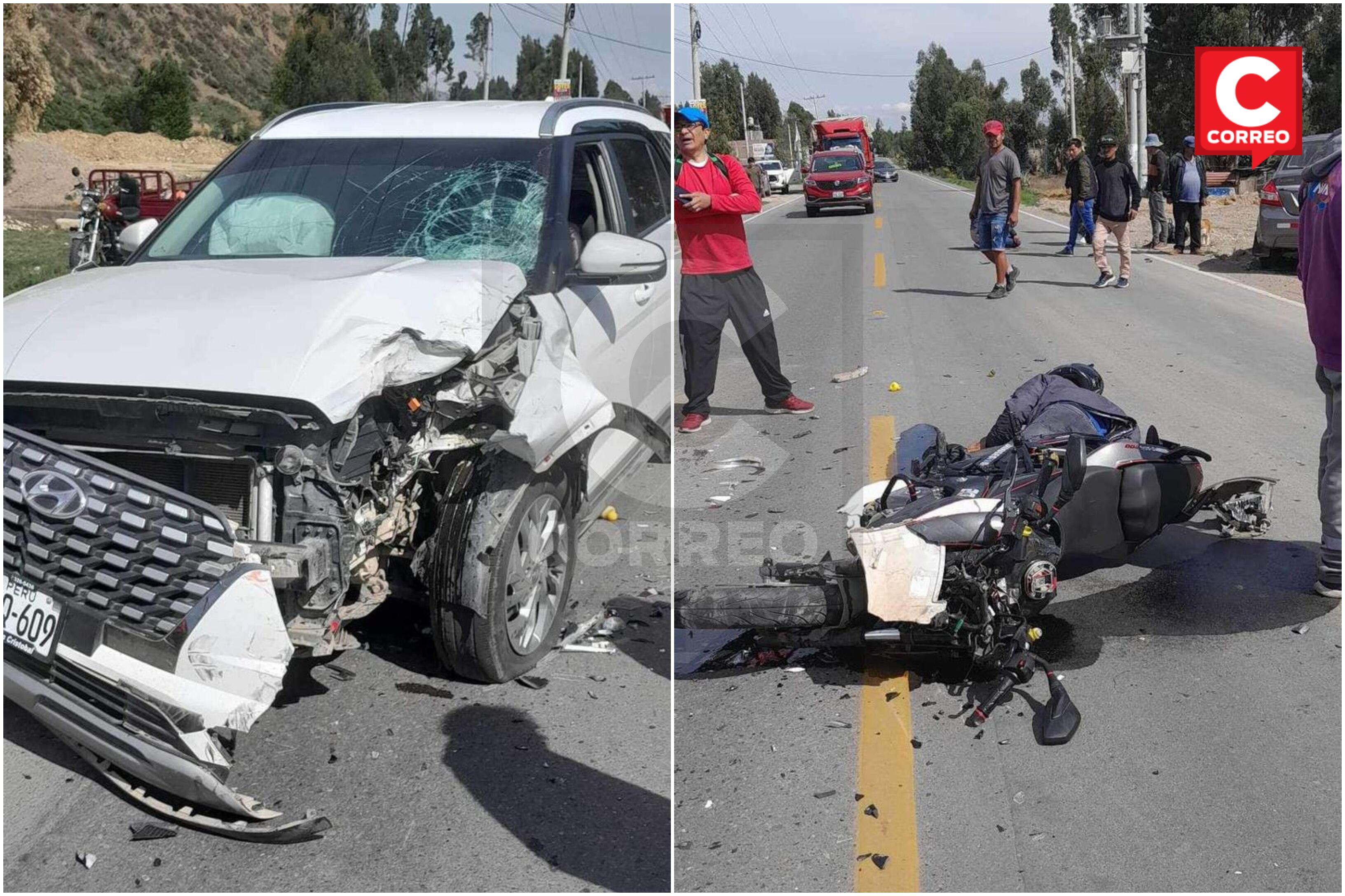 Un nuevo accidente de tránsito se registró en la ruta Jauja Huancayo, dejando daños materiales de consideración y el saldo de dos personas heridas. El hecho se registró la mañana de este domingo en el km. 105 de la carretera margen derecha en el distrito de Orcotuna, protagonizado por un automóvil color blanco de placa BZQ 609 que era manejado por Willard Osores Paucarchuco (46) que impactó contra una motocicleta lineal de placa 633 RM que se dirigía en sentido contrario.