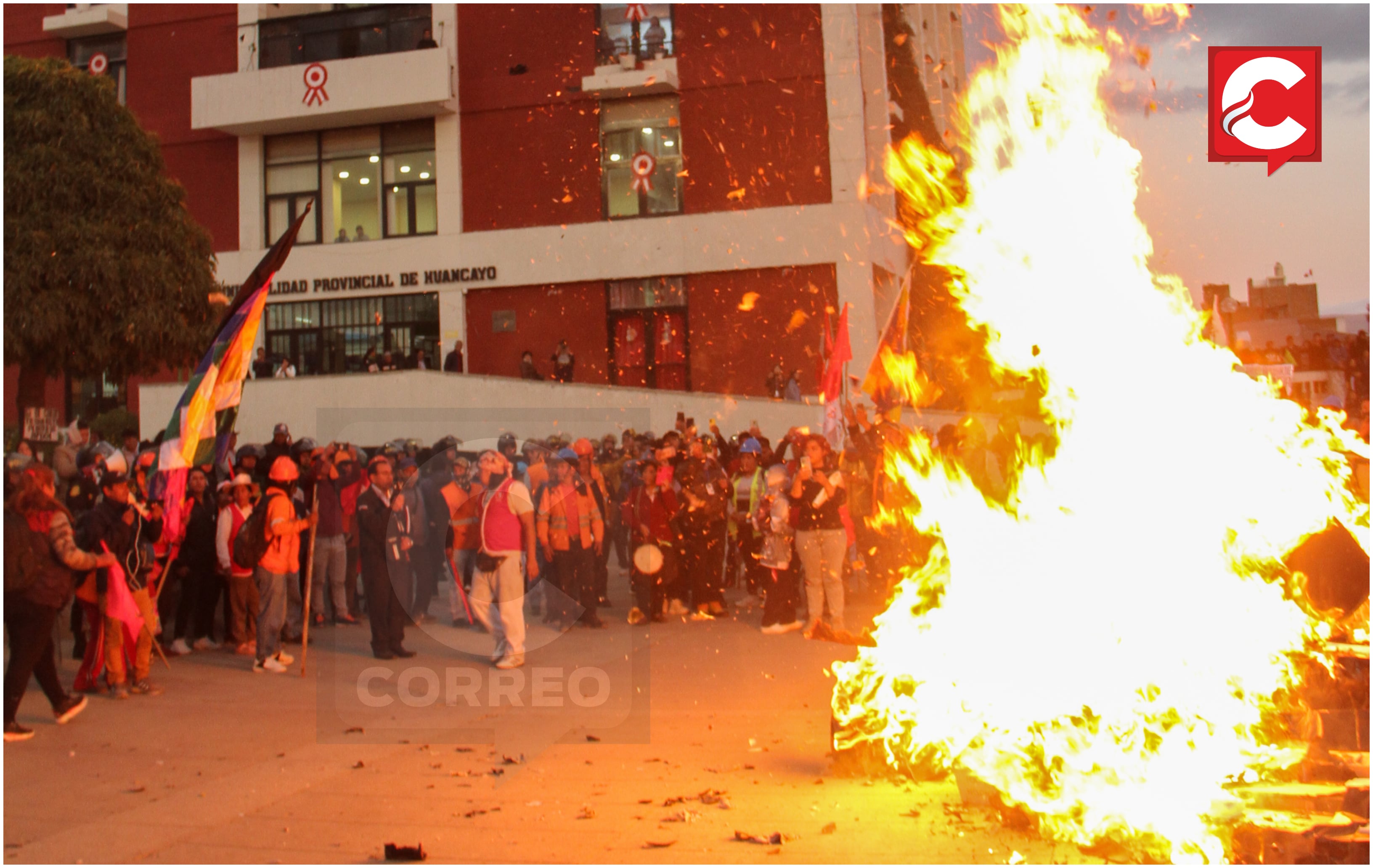 Ya en la plaza Huamanmarca se juntaron todos los ataúdes que habían recorrido la ciudad durante el día y fueron quemados al medio del espacio mientras alrededor los manifestantes continuaron con sus arengas.