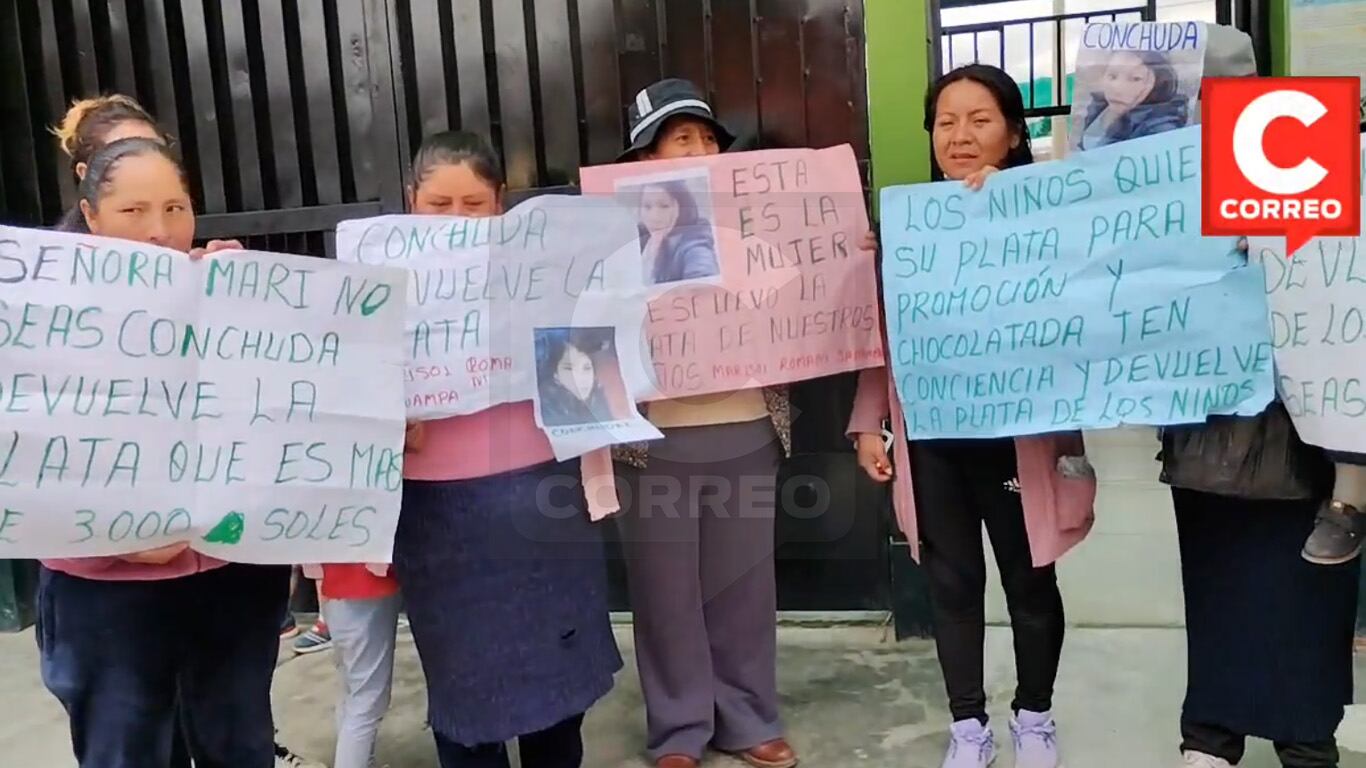 Padres de la Institución Educativa María Natividad Salazar N° 30153 del distrito de Chilca, provincia de Huancayo, realizaron un plantón en contra de la tesorera del aula de quinto grado por no devolver la suma de 3 mil soles que iba ser destinado para el compartir de fin de año y promoción de estudiantes.