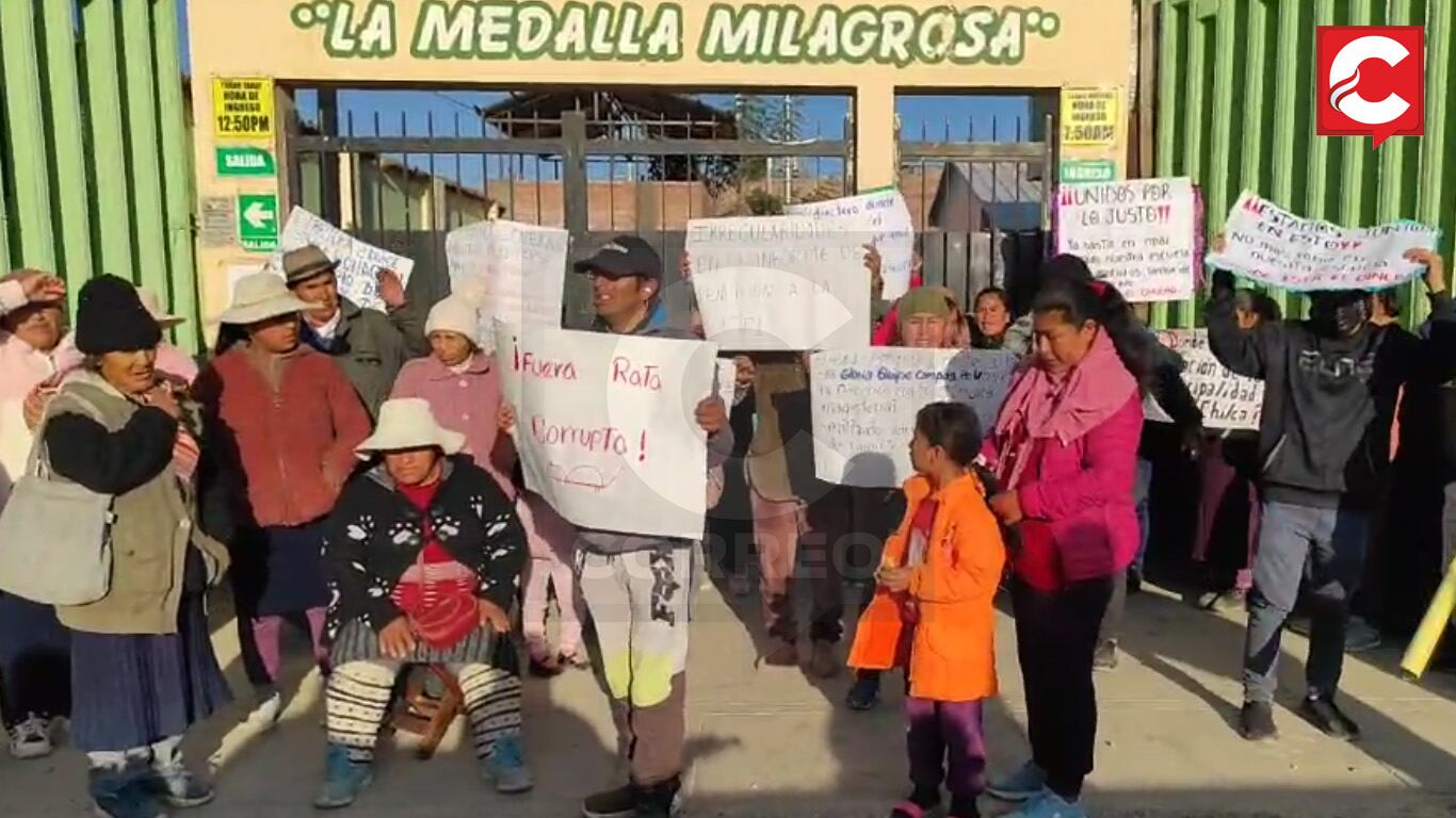 Padres de familia de la Institución Educativa “Medalla Milagrosa “ubicada en el distrito de Chilca, provincia de Huancayo, realizaron un plantón hoy por la mañana y negaron el ingreso a la directora encargada. Ellos reclaman el mal uso de fondos por parte de los directivos y mal trato que reciben.