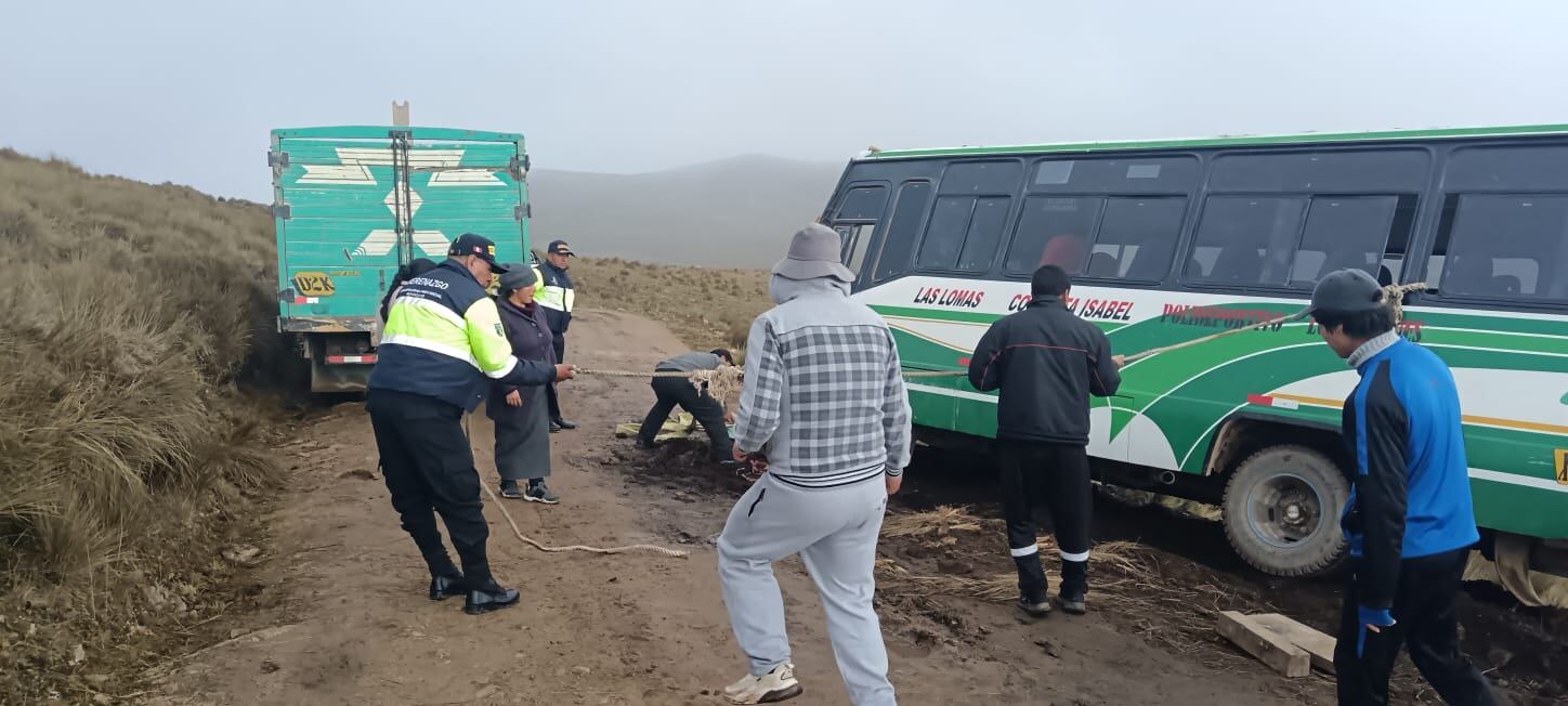 Una cúster en la que viajaban alrededor de 15 miembros de una familia, entre menores y adultos, quedó al borde del abismo en el anexo de Hatun Suclla, distrito de Pucará, provincia de Huancayo. El mal estado de la carretera y la lluvia hicieron que las llantas del vehículo resbalaran.