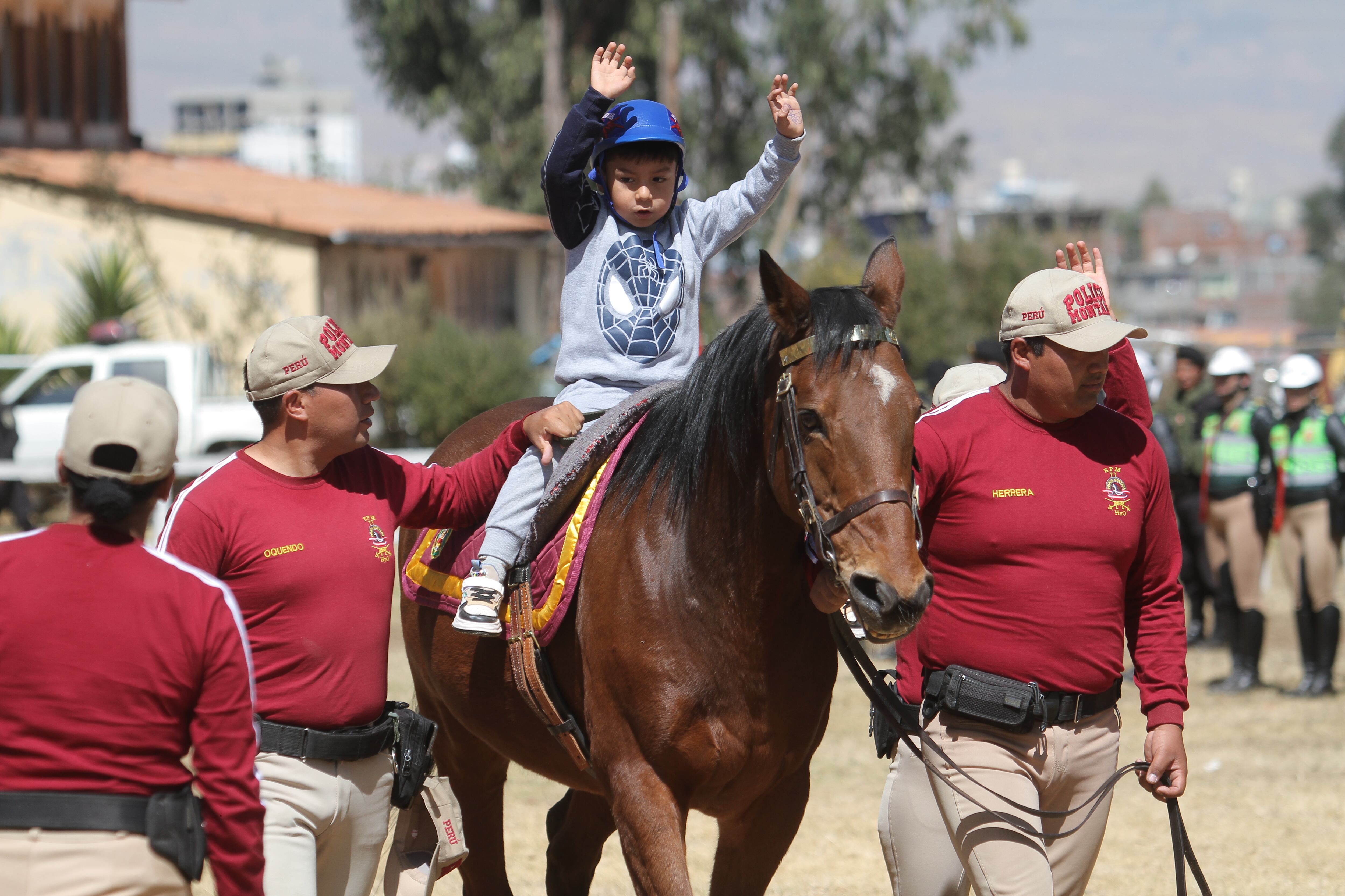 La Policía Montada de Huancayo, retomó el segundo programa de equinoterapia para niños con discapacidad y autismo. Son cinco caballos entrenados para esta actividad de extensión social que les permite a los menores desarrollar diversas habilidades cognitivas, del lenguaje y físicas.