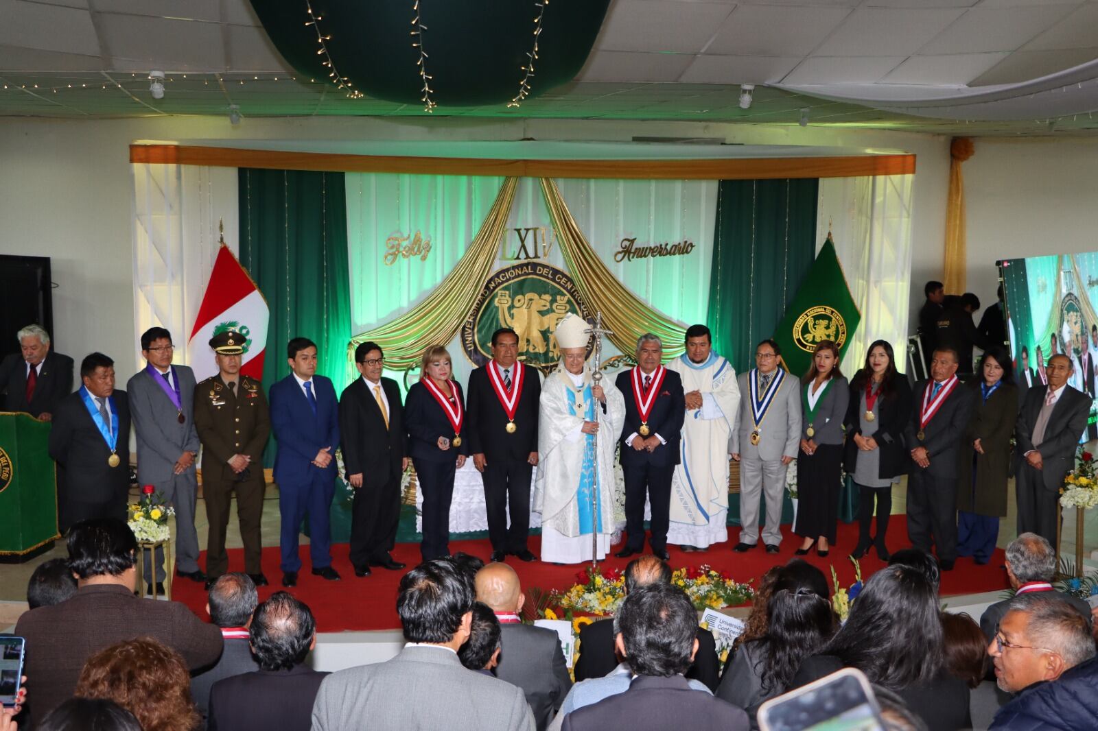 Con una ceremonia la Universidad Nacional del Centro del Perú (UNCP) celebró 64 años de creación institucional. “Tenemos un compromiso con las comunidades campesinas, y otorgamos a sus hijos, preparación de calidad para que alcancen vacantes. Durante el año hemos consolidado convenios con un aproximado de cien comunidades campesinas de Junín y Huancavelica”, remarcó durante su discurso el rector de la UNCP, Amador Vilcatoma Sánchez. A la fecha, mediante CEPRE se entregaron 991 medias becas y 433 becas por la modalidad de hijos de comunidades. Además, compartió los principales logros en el ámbito académico y de investigación.