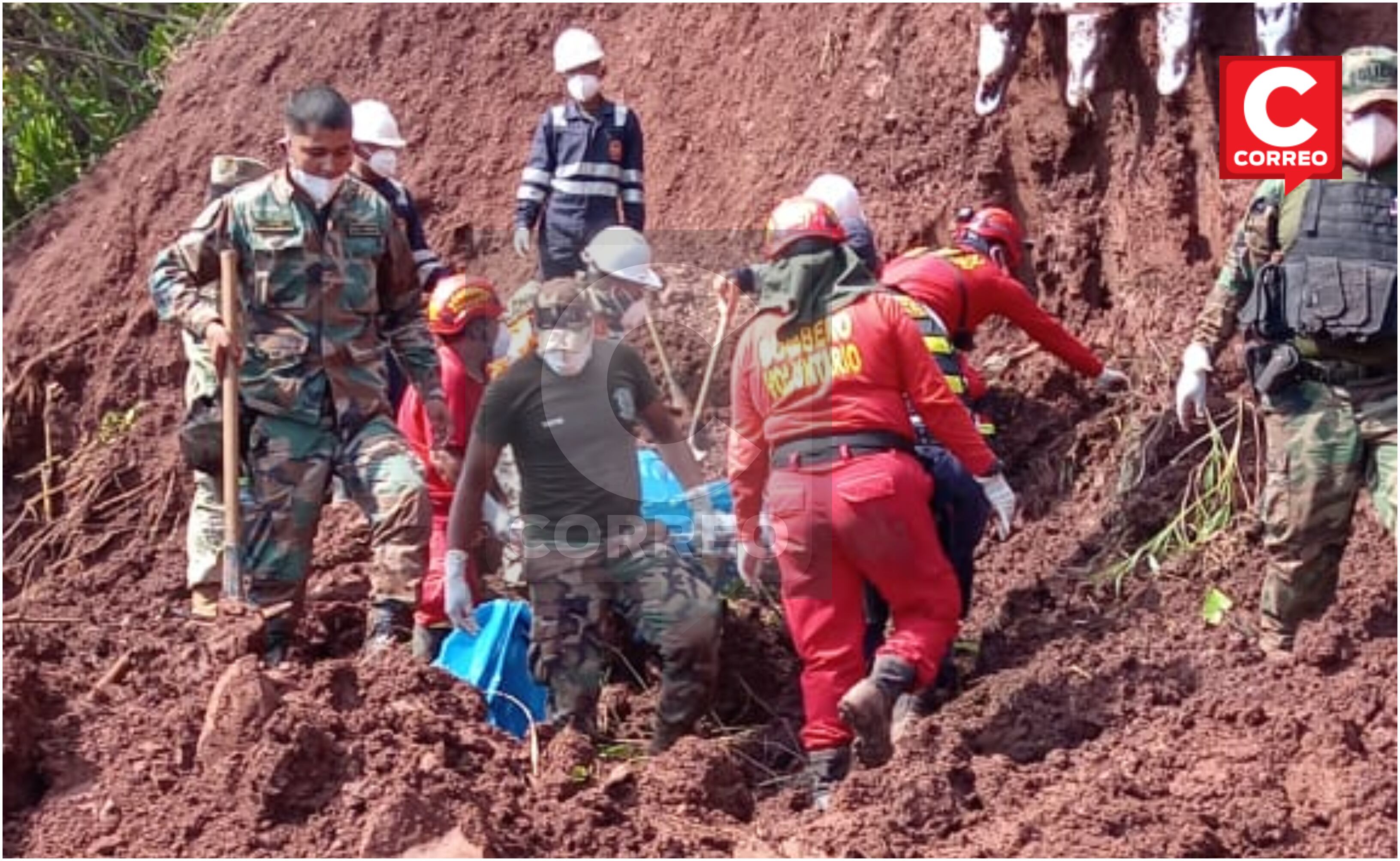 El hallazgo de registró al promediar las 11: 30 de la mañana de hoy. En la tarde fueron entrados los cuerpos de la madre Florentina Marcos Piori (29) y su hijo mayor. Miembros de la Policía Nacional, Serenazgo, Compañía de Bomberos, realizaron la búsqueda de la familia que quedó sepultada el jueves pasado por un deslizamiento de tierra.