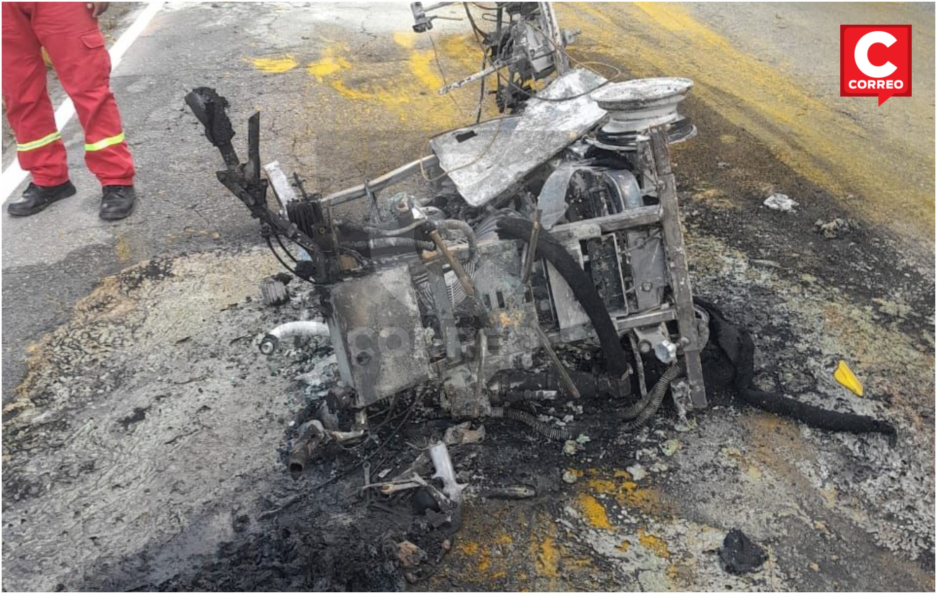 El impacto de un camión con una máquina que realizaba la señalización de la vía por encargo de Provías, provocó que esta última unidad terminara incinerada y que dos trabajadores resultaran heridos, uno de ellos de gravedad. El hecho ocurrió el pasado viernes en la vía principal al centro poblado Unión Capiri distrito de Rio Negro en la provincia de Satipo
