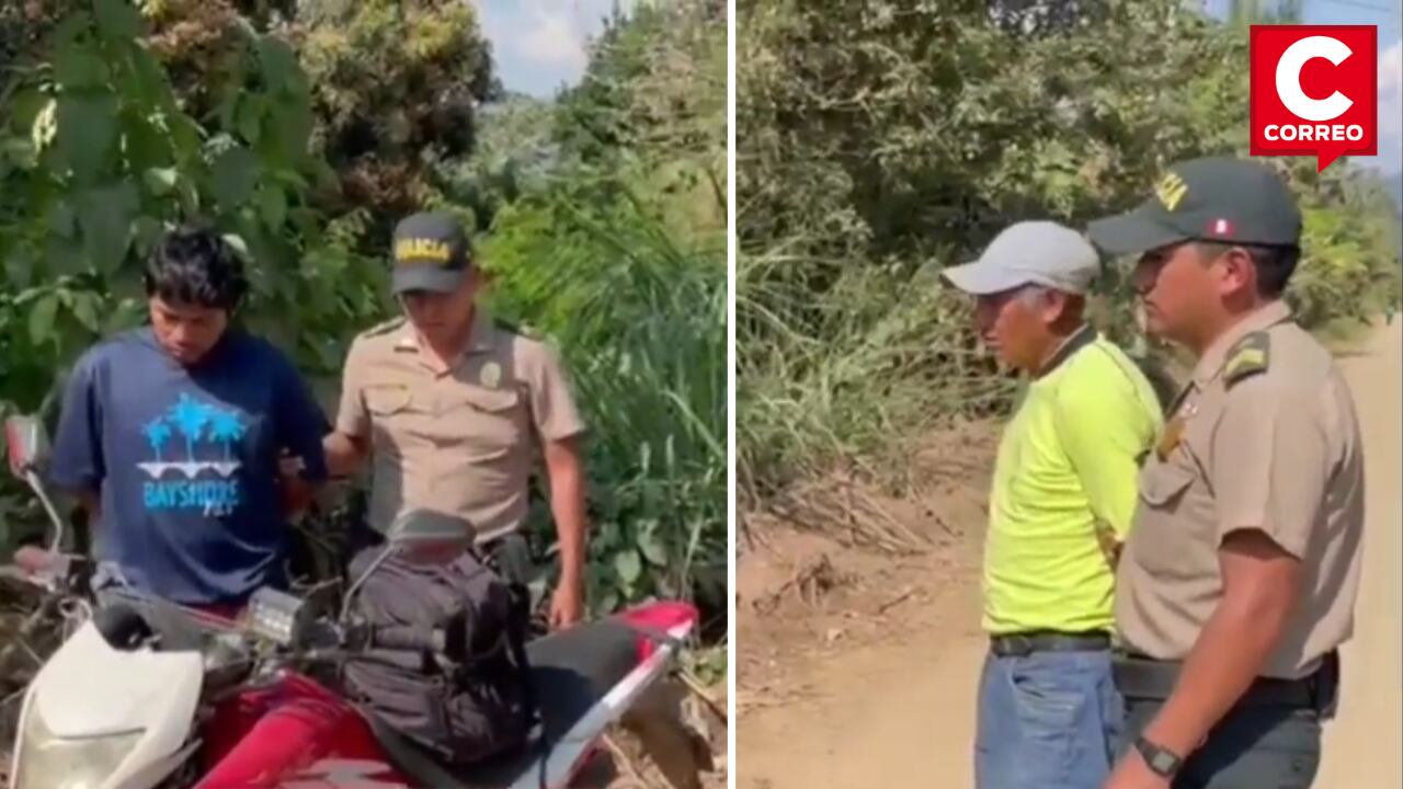 Dionisio Gabriel Quilcas (60) y Allen Eder Cantos Sandoval (37) fueron intervenidos cuando pasaban por la carretera antigua de Satipo – Río Negro a bordo de una moto lineal color rojo, entre sus pertenencias tenían una mochila, cuando la inspeccionaron encontraron retazos de una sustancia blanca envueltas en bolsas plásticas.