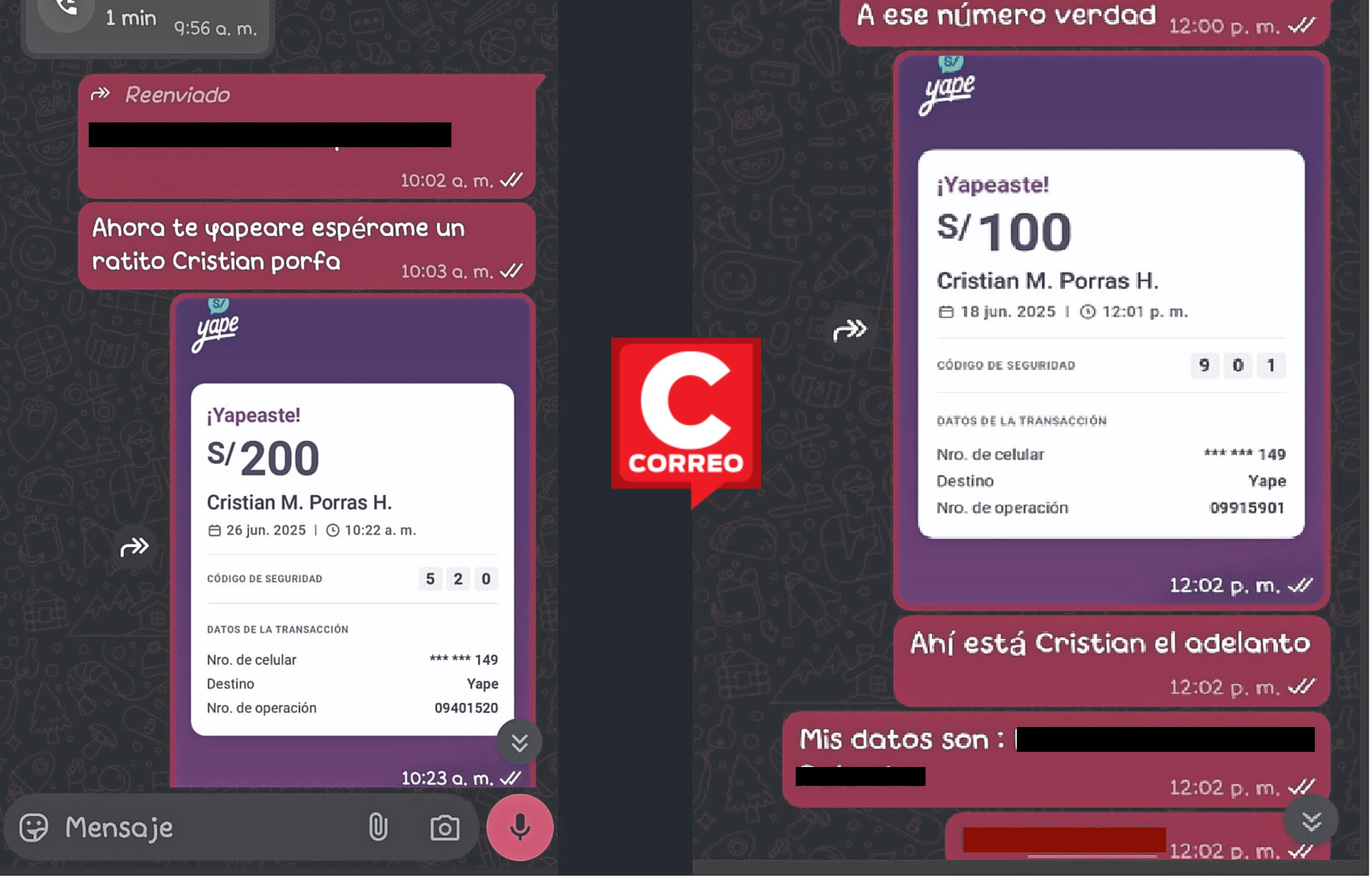 De acuerdo con las transcripciones incluidas en el documento, el dinero habría sido entregado a un regidor municipal, quien presuntamente no cumplió con el compromiso asumido, por lo que se tuvo que proceder con la devolución del dinero. Un sujeto identificado como Cristian, señalado como intermediario, habría sido quien finalmente devolvió el monto al sereno que efectuó el pago vía yape.
