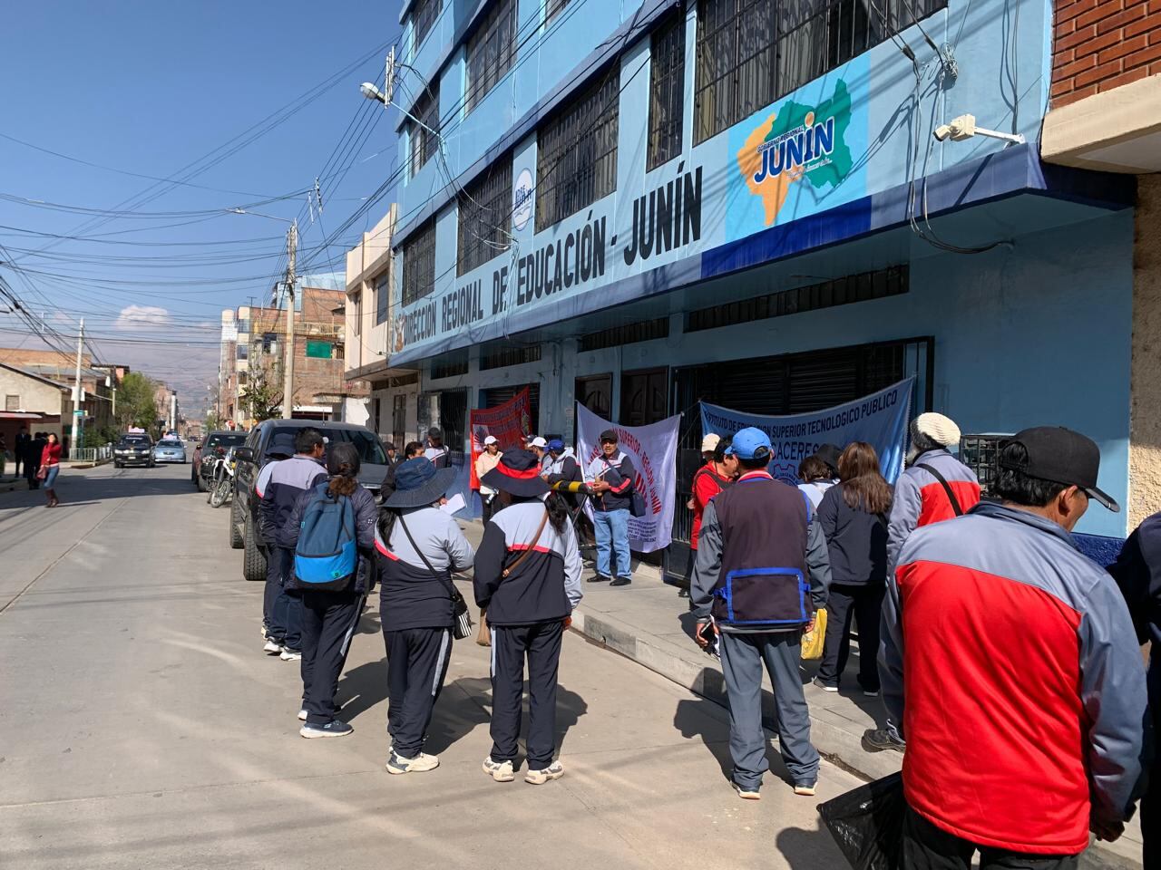 Ayer los integrantes del Sindicato de Trabajadores Administrativos del Sector Educación (SITASE) de los institutos de educación superior de la región Junín paralizaron sus labores y llegaron hasta la Dirección Regional de Educación (DRE) Junín para exigir al director del mencionado sector que cumpla con los acuerdos del pasado 19 de agosto entre la DREJ y SITASE, como es el pago de vacaciones, reconocer el bono alimenticio mediante resolución, la entrega de uniformes, entre otros. “También estamos exigiendo el cambio de responsables de las áreas de recursos humanos, áreas de asesoría legal, administración y otros quienes firmaron el acta y no cumplen por falta de capacidad o desinterés”, manifestó el subsecretario del SITASE, Saul Huarcaya Escobar. Un total de 192 trabajadores administrativos de los institutos pedagógicos, tecnológicos y artísticos de la jurisdicción exigen cumplir con los acuerdos.