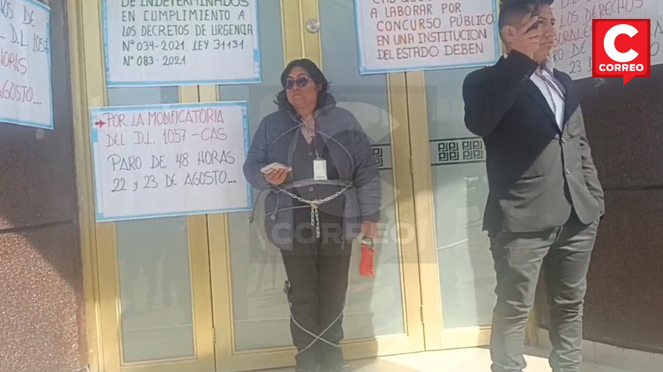 El Sindicato de Trabajadores CAS del Poder Judicial realizaron un paro a exteriores de la Corte Superior de Justicia Junín exigiendo homologación de sueldos. La medida de lucha se viene realizando a nivel nacional y será por 48 horas.