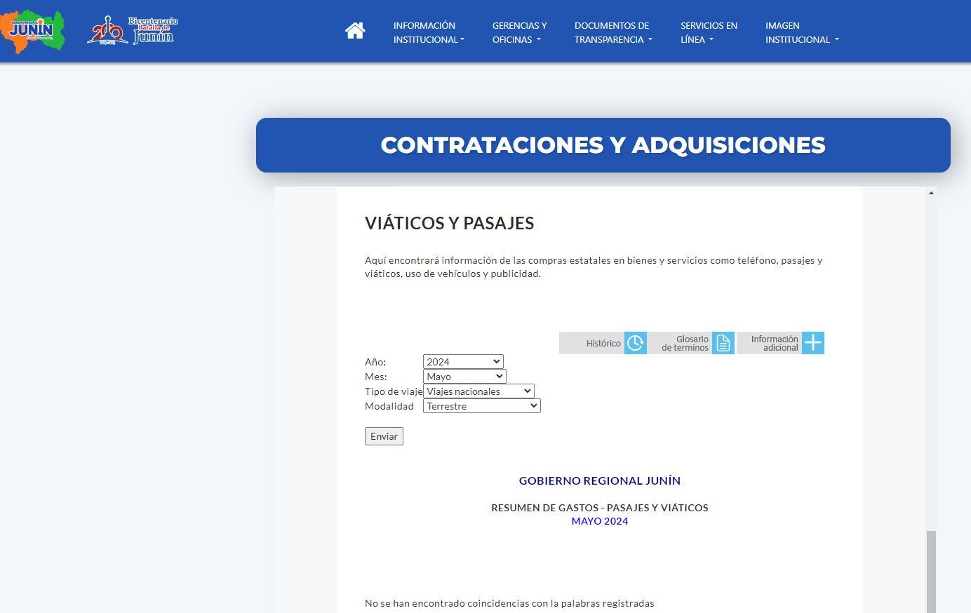 El Gobierno Regional de Junín enfrenta cuestionamientos por no actualizar correctamente su Portal de Transparencia Estándar (PTE) desde junio del 2023. La omisión es particularmente notable en las secciones de viáticos y pasajes, las cuales no han sido actualizadas. La falta de actualización no solo afecta la información sobre viáticos y pasajes, sino también otros aspectos como datos del personal y la contratación de bienes y servicios. Este incumplimiento vulnera el derecho de los ciudadanos a solicitar y recibir información pública.