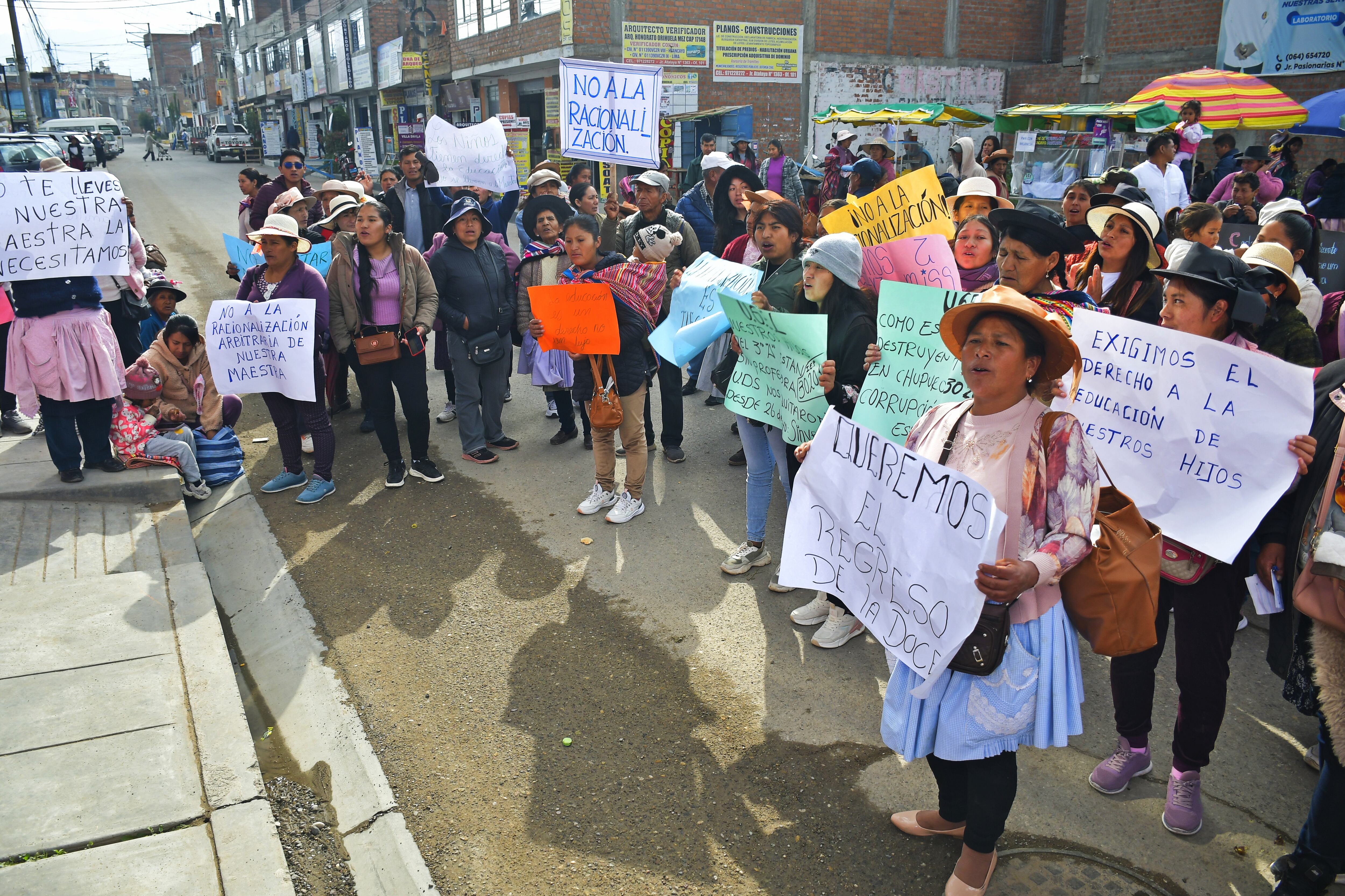 Padres de familia de la I.E 30201, ubicada en el distrito de Chupuro, realizaron unHuancayo: a protesta en los exteriores de la UGEL Huancayo exigiendo el retorno de una docente del 3° A de primaria, que fue retirada recientemente por un proceso de racionalización dispuesto por la UGEL.