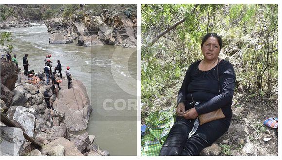 Grita el nombre de sus seres queridos desaparecidos, suplicando a Dios que el río Mantaro suelte los cadáveres de su hijo Cristián Ochoa Medina (33) y su nieto Kenyel Cristián Ochoa Casas (13).