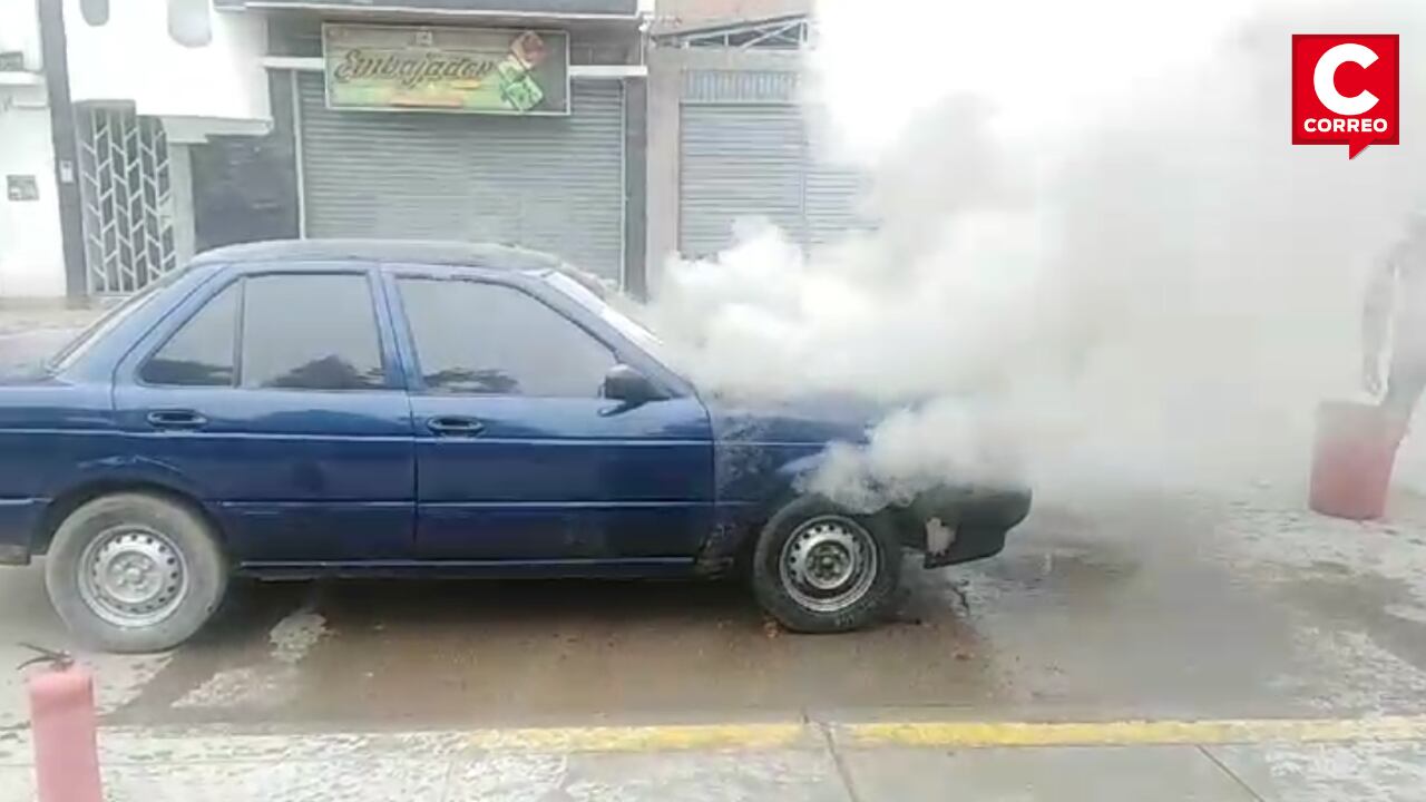 Un vehículo color azul de placa W1E-018 se incendió por inmediaciones del parque Grau, en la provincia de Huancayo, según testigos en el interior iban tres personas a bordo, que al ver las llamas salieron del vehículo para intentar apagar las llamas.