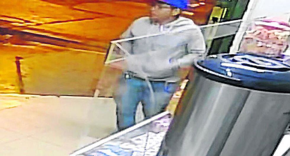 ESTRATEGIA. Casi a las 8:28 de la noche un sujeto que viste polera ploma, pantalón jean, una gorra azul y roja y lentes, ingresa al establecimiento, antes de pasar el mostrador, mira una vez más atrás y entonces ingresa corriendo al cajón donde se guardaba la ganancia del día. Su prisa es tanta que incluso bota el tacho de basura a su paso, en menos de un minuto, coge todo los billetes que puede y se hace de un estuche mediano con más efectivo.