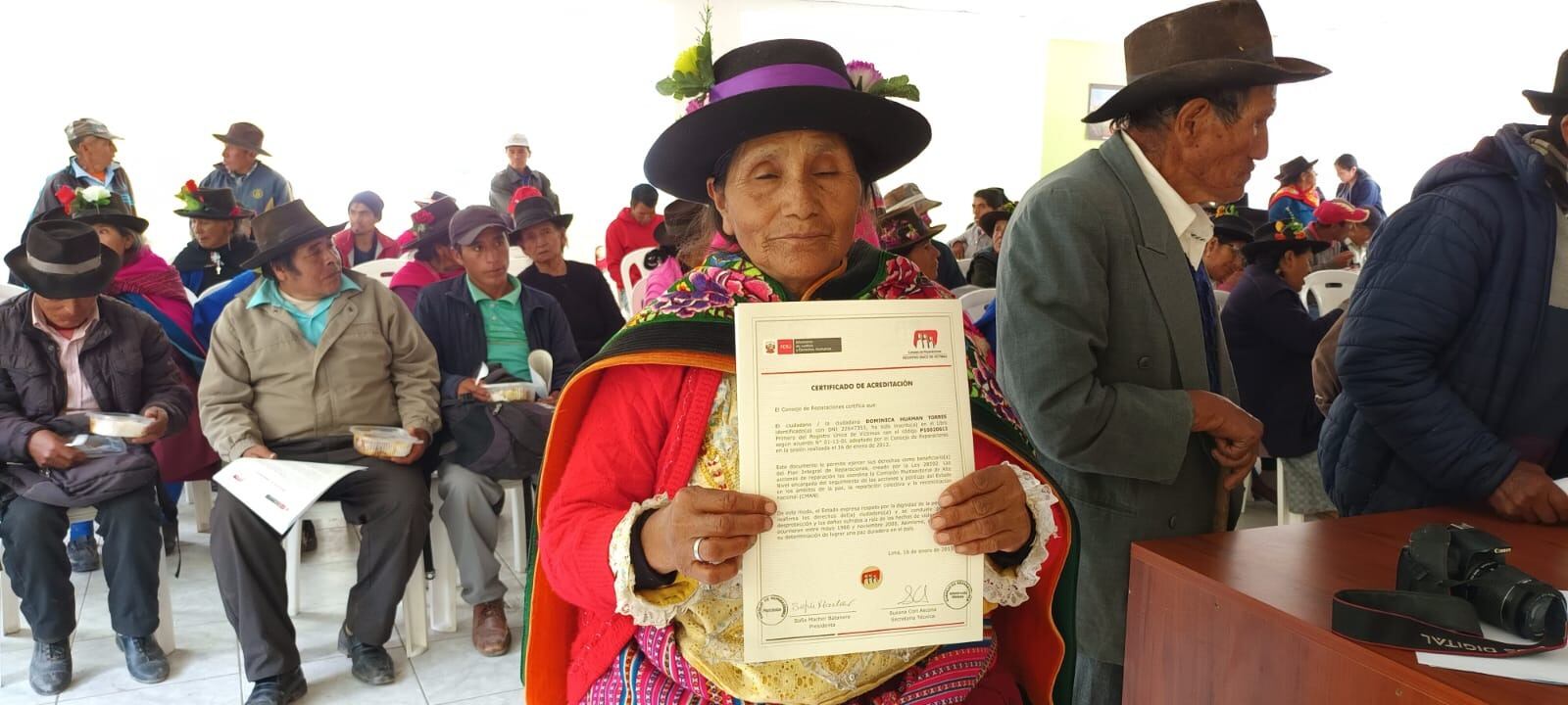 En marco al proceso de reparación a las víctimas de la violencia política ocurrida en el país entre 1980 al 2000, la Oficina de Registro Único de Víctimas, instancia adscrita a la Gerencia de Desarrollo Social del Gobierno Regional Huánuco, entregó credenciales a 75 pobladores del distrito de Colpas, provincia de Ambo.