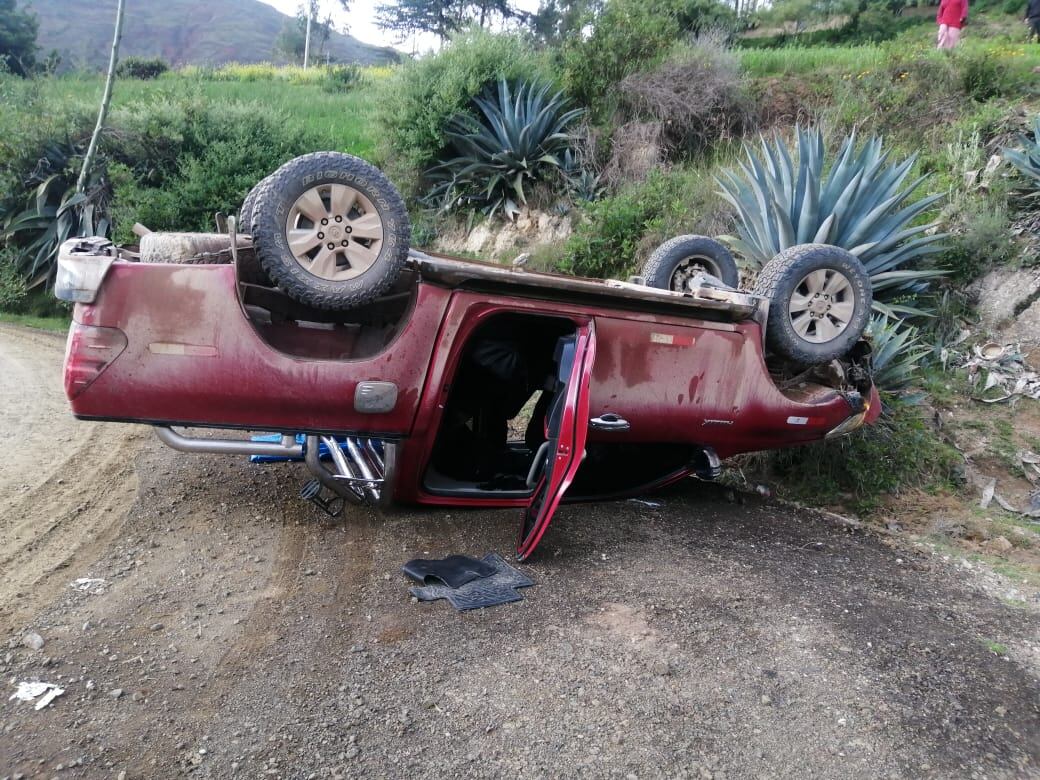 La camioneta en la que viajaban se despistó dando una vuelta de campana y terminó con las llantas hacia arriba, felizmente se salvaron de caer a un abismo de casi 100 metros. Tras el accidente rápidamente fueron auxiliados por pobladores de la zona y conductores de otros vehículos que los llevaron al centro de salud de Yacus.