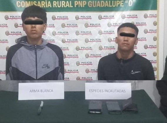 En un operativo ejecutado la noche del 14 de febrero de 2026, efectivos de la Comisaría PNP Guadalupe detuvieron a dos jóvenes señalados como presuntos integrantes de la banda criminal denominada “Los Malditos de Expansión”, acusados de cometer un robo agravado con arma blanca en la jurisdicción.