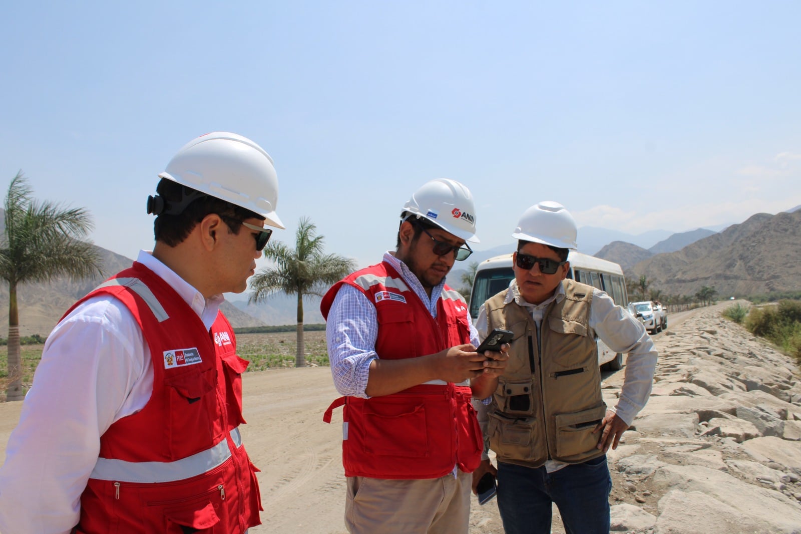 La jornada inició en la parte alta del ámbito del proyecto, con la charla introductoria a la comitiva por parte Unidad Desconcentrada de la ANIN en Ica y el gerente del proyecto. Posteriormente, se llevó a cabo una reunión de coordinación para definir los tramos de visita e iniciar el recorrido de inspección.
