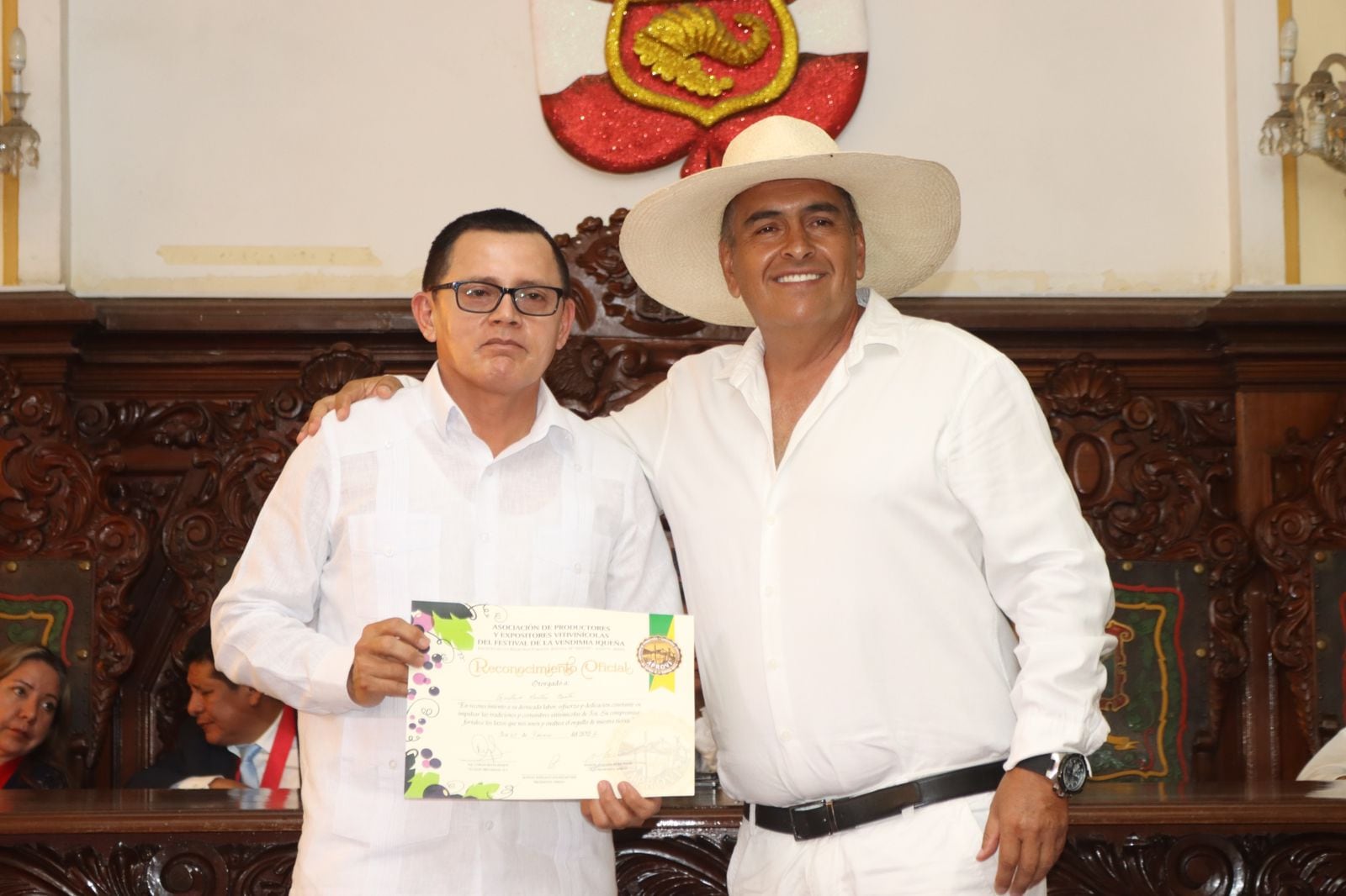 El acto de reconocimiento se realizó en el salón consistorial de la Municipalidad Provincial de Ica, en el marco de la conmemoración de los 248 años del nacimiento del Libertador San Martín, los 456 años de la llegada de la sagrada imagen del Cristo Crucificado Señor de Luren a la ciudad de Ica, y los 37 años de fundación de la Asociación de Productores Expositores Vitivinícolas del Festival de la Vendimia Iqueña – APROVI.