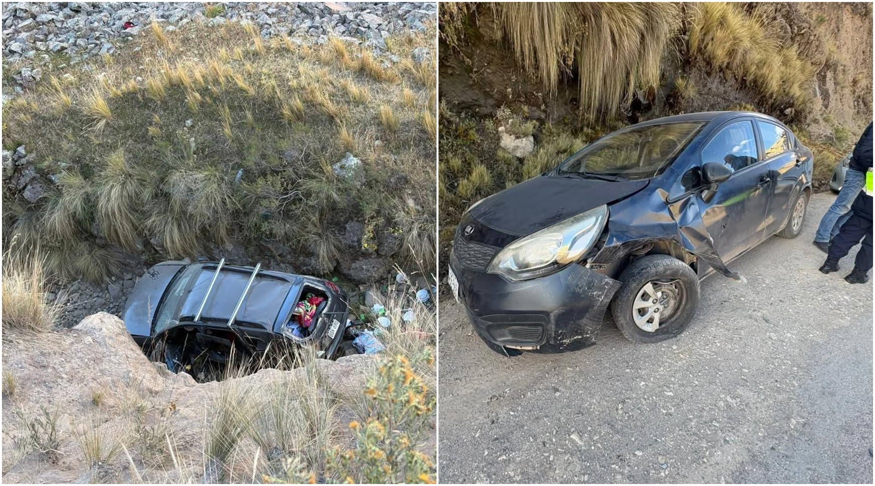 El accidente habría sido causado por el despiste de dos vehículos que transitaban por la vía. Uno de ellos, un automóvil de color negro marca Kia, con placa W3E-568, terminó con severos daños en la parte delantera. El segundo vehículo, de placa BDX-690, también negro, cayó a un abismo.