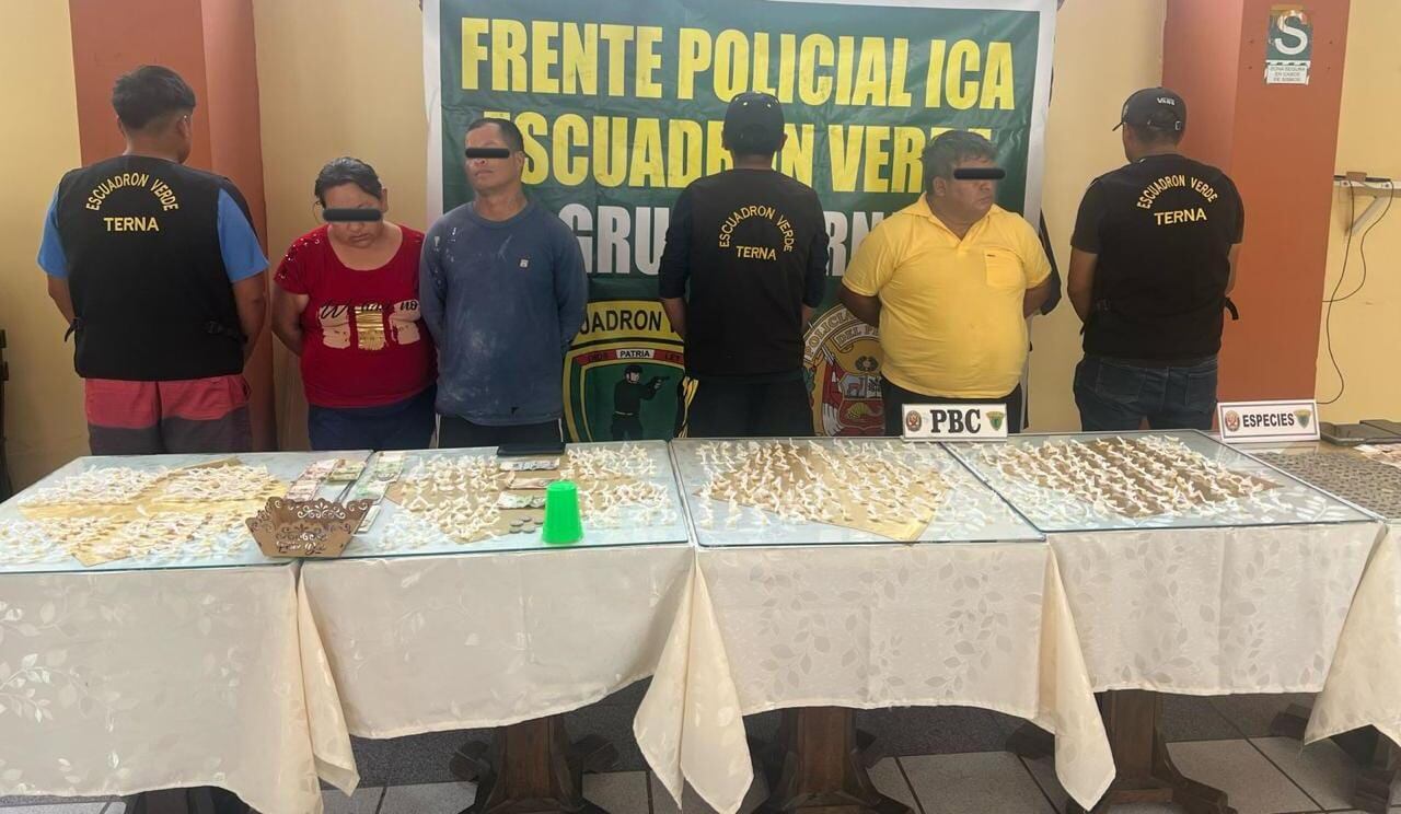 La PNP detuvo a Víctor Hugo Terrones Julca de 34 años, Diana Carolina Huachua Gonzales (33), Freddy Alcalá Choque (57), presuntos integrantes de la banda delictiva “Los remanentes intocables de Ica”, dedicados al parecer a cometer delitos contra la salud pública en su modalidad de tráfico ilícito de drogas. La acción policial de dio en el programa de vivienda parcela 1 - damnificados del fenómeno del niño, en las viviendas lote -2 y lote-6 (San Juan Bautista-Ica).