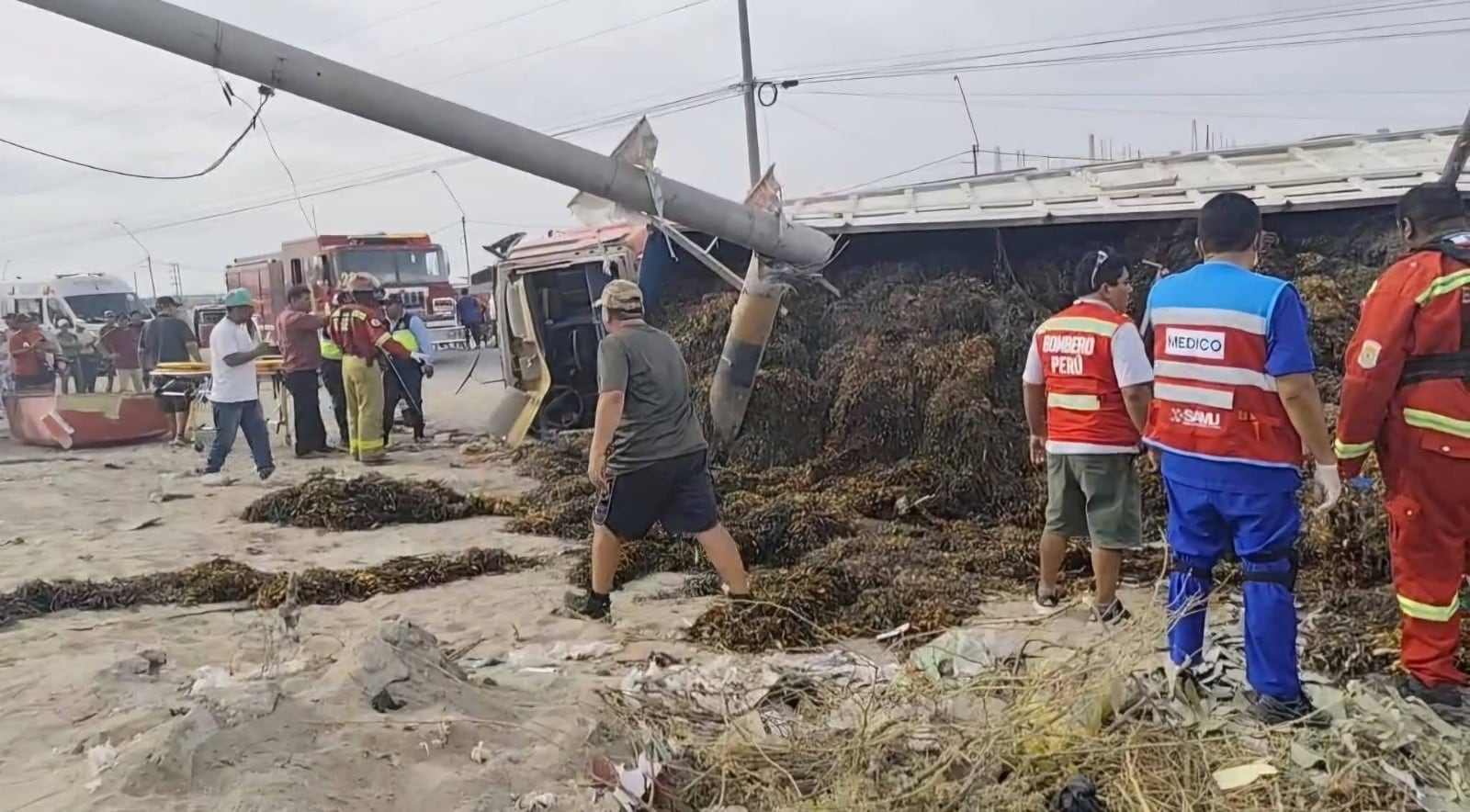 El vehículo aparentemente transportaba sargazo desde la zona de playa hacia la ciudad de Ica.
