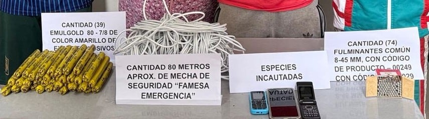 Durante el registro, los agentes incautaron 39 cartuchos de masa explosiva, 79 detonadores y medio rollo de mecha lenta, además de otras especies vinculadas al hecho. Especialistas advirtieron que la combinación de estos insumos constituye un potencial altamente destructivo, capaz de generar graves daños materiales y poner en peligro vidas humanas si se manipula sin las medidas técnicas correspondientes.