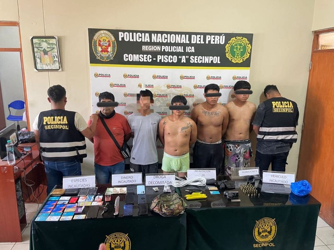 La Policía Nacional del Perú, a través de la Región Policial Ica, informó la desarticulación de la banda criminal conocida como “Los Malditos de Pisco”, tras la captura de cinco personas, entre ellas un menor de edad, y el hallazgo de armas de fuego, explosivos y drogas. La intervención se realizó en el marco de la declaratoria de emergencia en Pisco por 60 días.