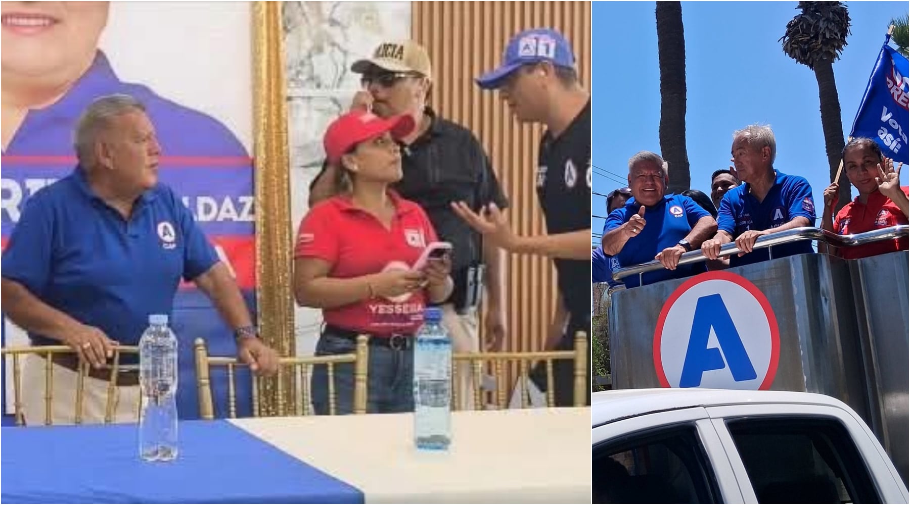 Posteriormente, Acuña llegó a la provincia de Ica, donde se movilizó en una caravana que concluyó en el Club El Álamo. Durante esta visita estuvo acompañado por los candidatos de su partido a la Cámara de Diputados y al Senado, Luis Castro Makabe y José Luis Elías, respectivamente. Ambos ocupan actualmente cargos públicos —como consejero regional y congresista de la República respectivamente— lo que generó cuestionamientos entre la población sobre la necesidad de una mayor fiscalización de los actos de autoridades regionales y nacionales, ya que fueron elegidos para trabajar en favor de la población, sin embargo ayer fueron vistos casi todo el día al lado de Acuña.