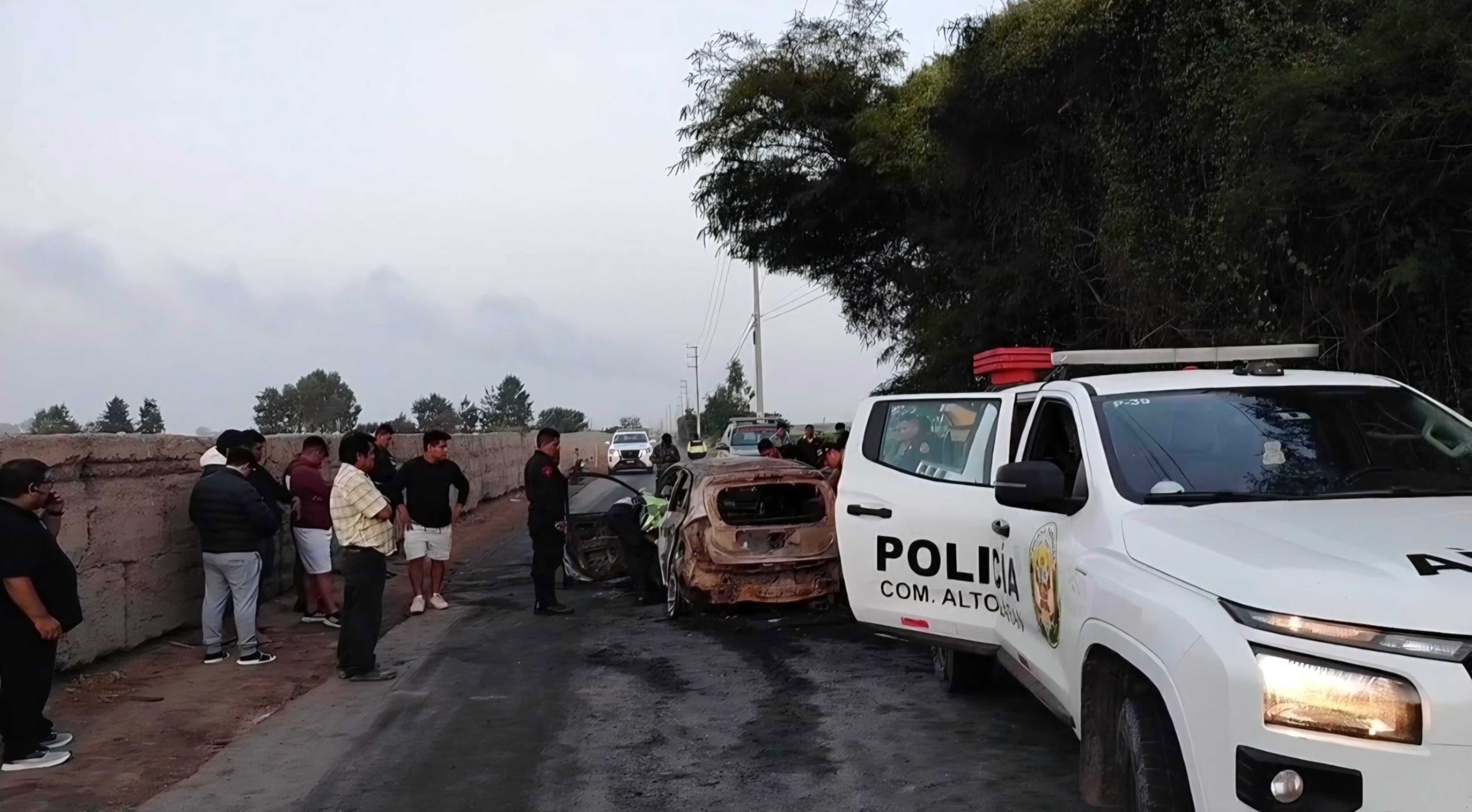 Al promediar las 2:30 de la madrugada personas que ocasionalmente pasaban por esta vía notaron que el auto de placa de rodaje F9G-371 se encontraba en llamas a la mitad de la pista. Para ese entonces el fuego había avanzado por toda la unidad, no siendo posible acercarse para confirmar si en el interior permanecía algún ocupante. Ante esta situación se solicitó el apoyo de la Compañía de Bomberos Salvadora Chincha B38.