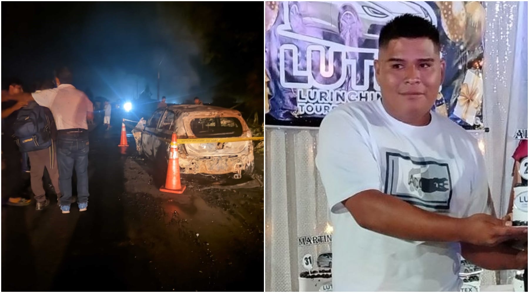 El cuerpo estaba en el asiento delantero calcinado, irreconocible para los transportistas que se detuvieron para ayudar a los bomberos. Por la placa del vehículo pudo identificarse a la propietaria y minutos más tarde familiares del occiso llegaron al lugar. Rubén Chumpitaz, joven que trabajaba como agente de seguridad y en sus tiempos libres aprovechaba para brindar servicio de taxi, perdió la vida en este hecho, que se encuentra en proceso de investigación.
