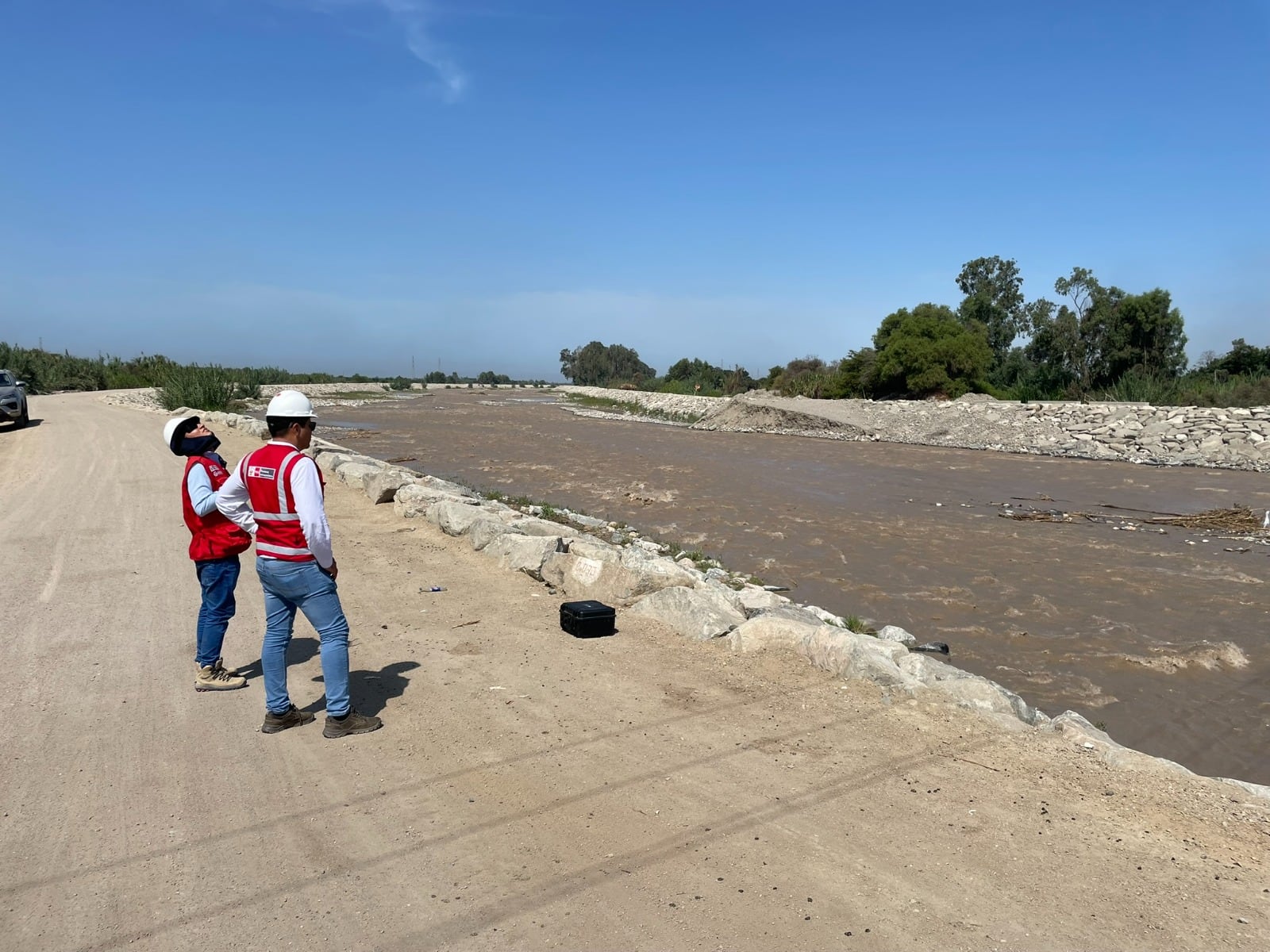 La inspección fue realizada por especialistas y el equipo técnico de la Unidad Desconcentrada de Ica, quienes recorrieron distintos tramos del río Matagente y del río Chico para verificar el estado y funcionamiento de las defensas ribereñas y gaviones ejecutados como parte del proyecto. Durante la visita, se constató el adecuado desempeño de estas estructuras ante el incremento del caudal producto de las lluvias.