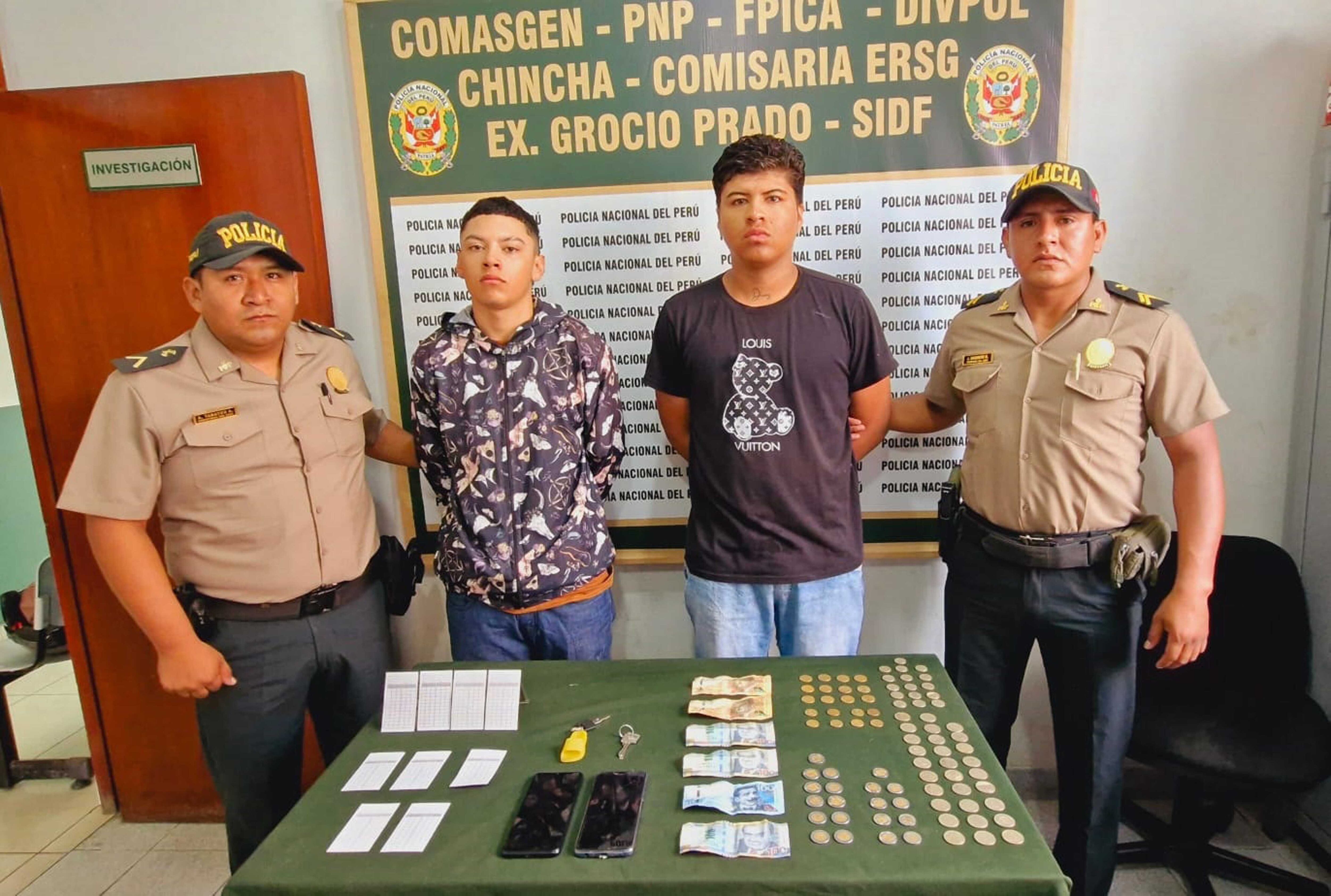 En el momento que intentaban escapar fueron atrapados sujetos de nacionalidad colombiana que estarían inmersos en los cobros de los préstamos “gota a gota”. Se tratan de José Brayan Vallesteros Montoya y Juan José Muñoz Saldarriaga, ambos de 18 años de edad, quienes se movilizaban en una motocicleta, cuando son detenidos por inmediaciones de la plaza de armas del distrito de Pueblo Nuevo.