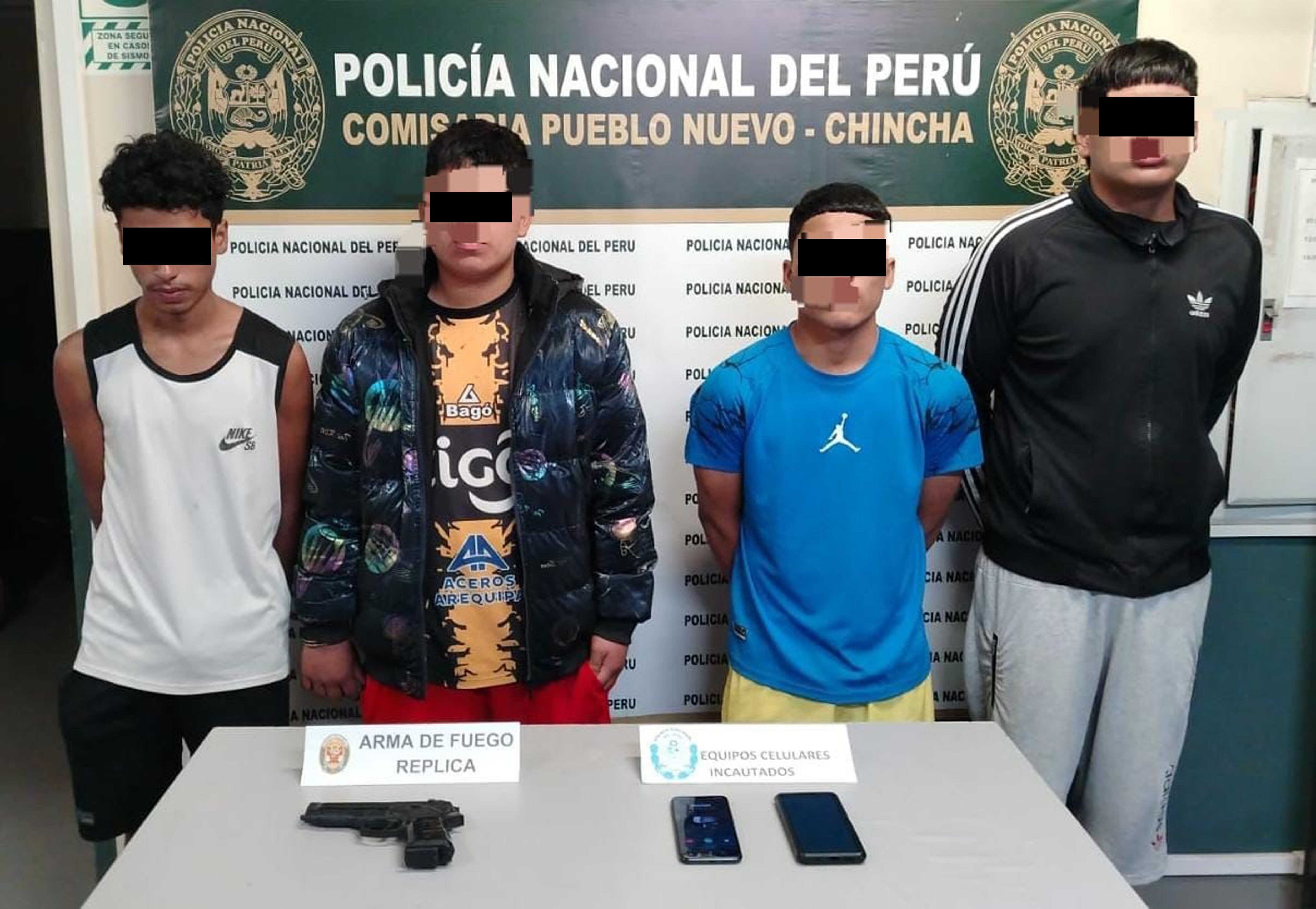 Tienen entre 14 y 19 años y ya están involucrados en actividades ilícitas. La policía los identifica como los integrantes de la banda denominada “Los chacales de Pueblo Nuevo”, atrapados cuando escapaban en una mototaxi tras atacar a dos menores en la zona alta del distrito de Pueblo Nuevo. Durante el registro personal y vehicular se decomisó la réplica de un arma de fuego, al parecer, usada para intimidar a sus eventuales víctimas.