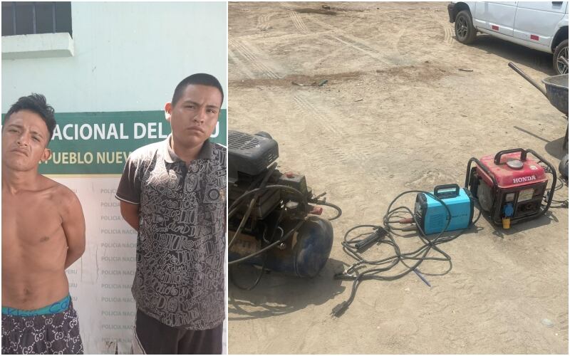 Los detenidos son Abel Isidro Curaca de 25 años (a) “chato isidro”, y Jhan Pool Alexander Bautista Reyes (21) (a) “chino”, quienes serían los integrantes de la banda delictiva denominada “Los mecánicos de la Unión”, quienes habrían sustraído una moto bomba, un motor, bolsa con diversas llaves de mecánica, máquina de soldar, y compresora.