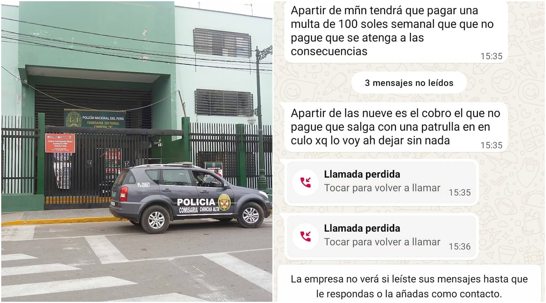 “Te vas a morir maldito”, así amenaza un sujeto de nacionalidad extranjera en su mensaje enviado al número personal del periodista Luis Amoretti. La pesadilla comenzó el miércoles último contra él y al día siguiente hacia un segundo hombre de prensa, a través de llamadas, mensajes por aplicativo y audios. El hampón exige el pago de 100 soles cada semana para no atentar contra estas personas, sus reporteros y su familia.